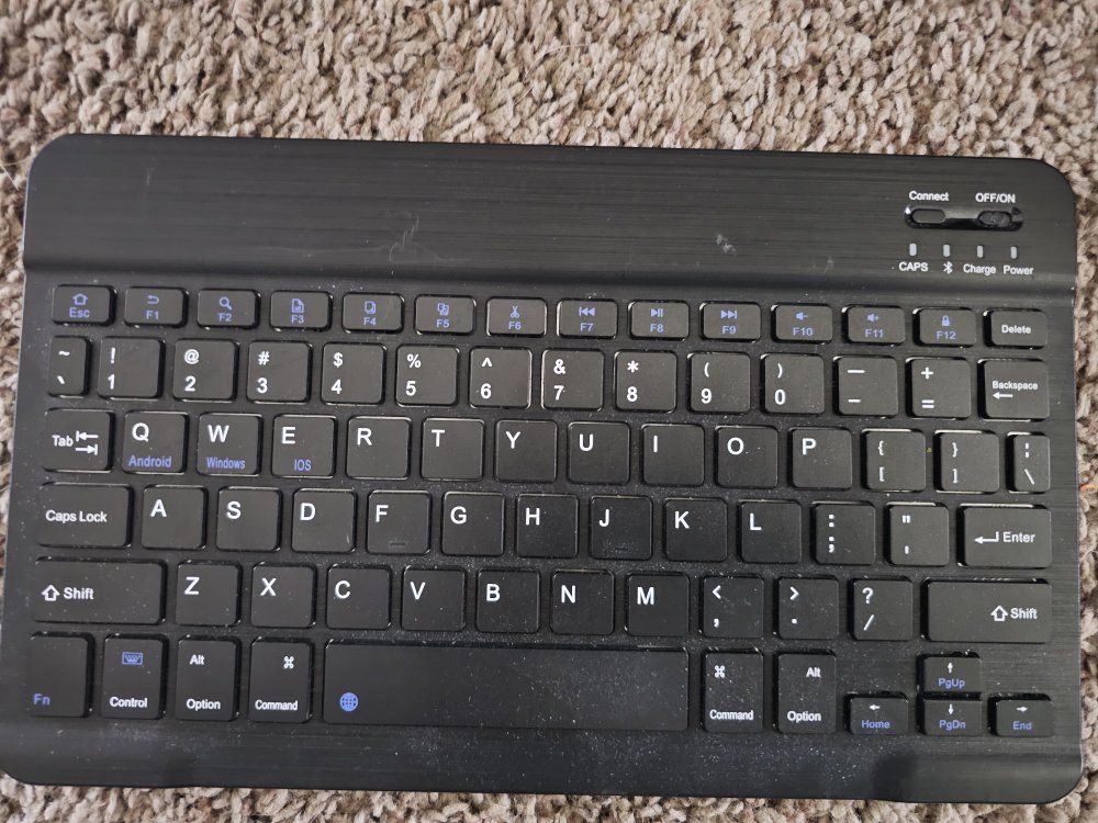 Universal wireless mini keyboard. Works via Bluetooth with tablets, phones, or laptops. Super thin and portable. Great shape and works fine.