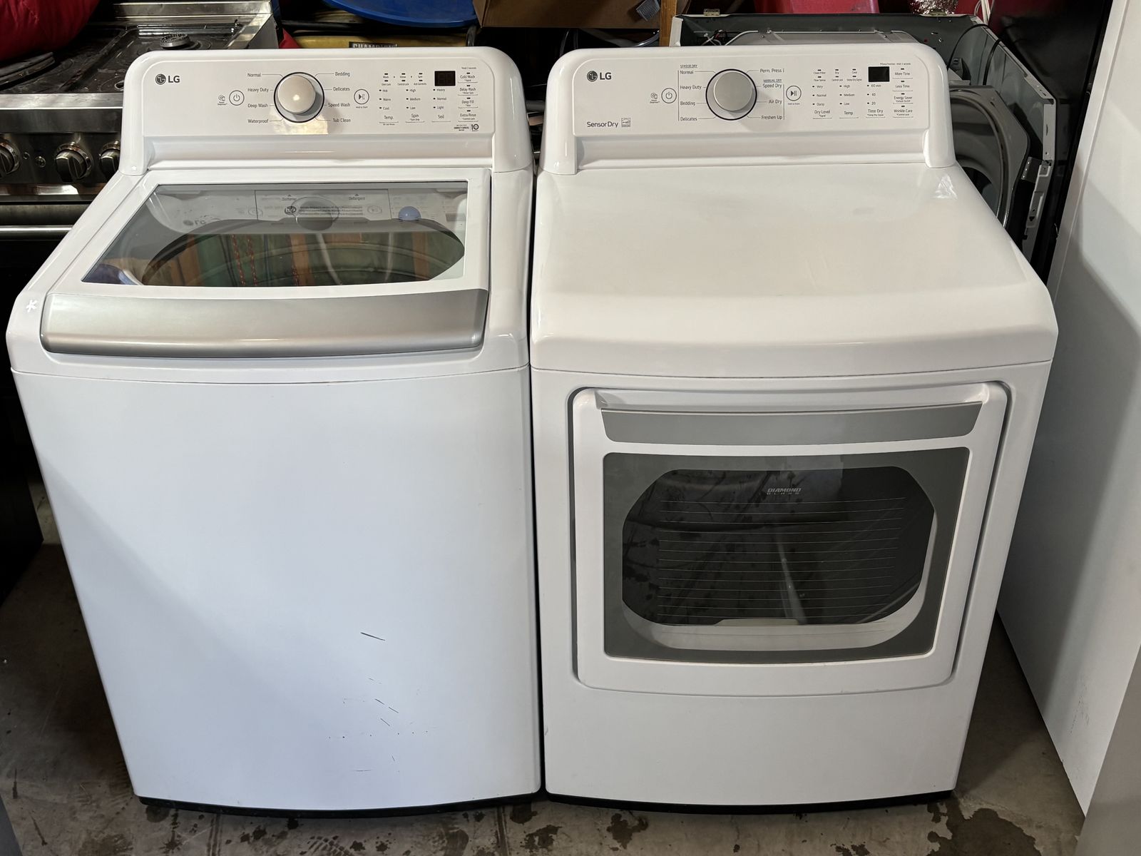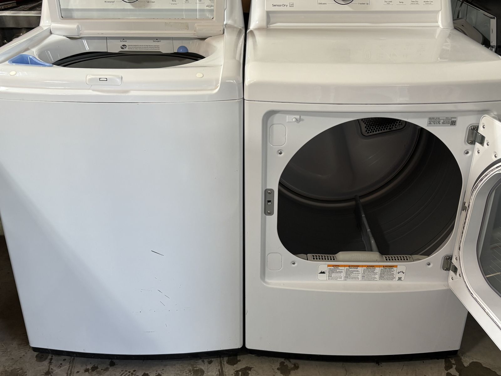 LG Mega Capacity washer and dryer. Both run great, are fully tested, clean, and ready for everyday use. The dryer includes steam technology for improved wrinkle reduction and fabric care.
