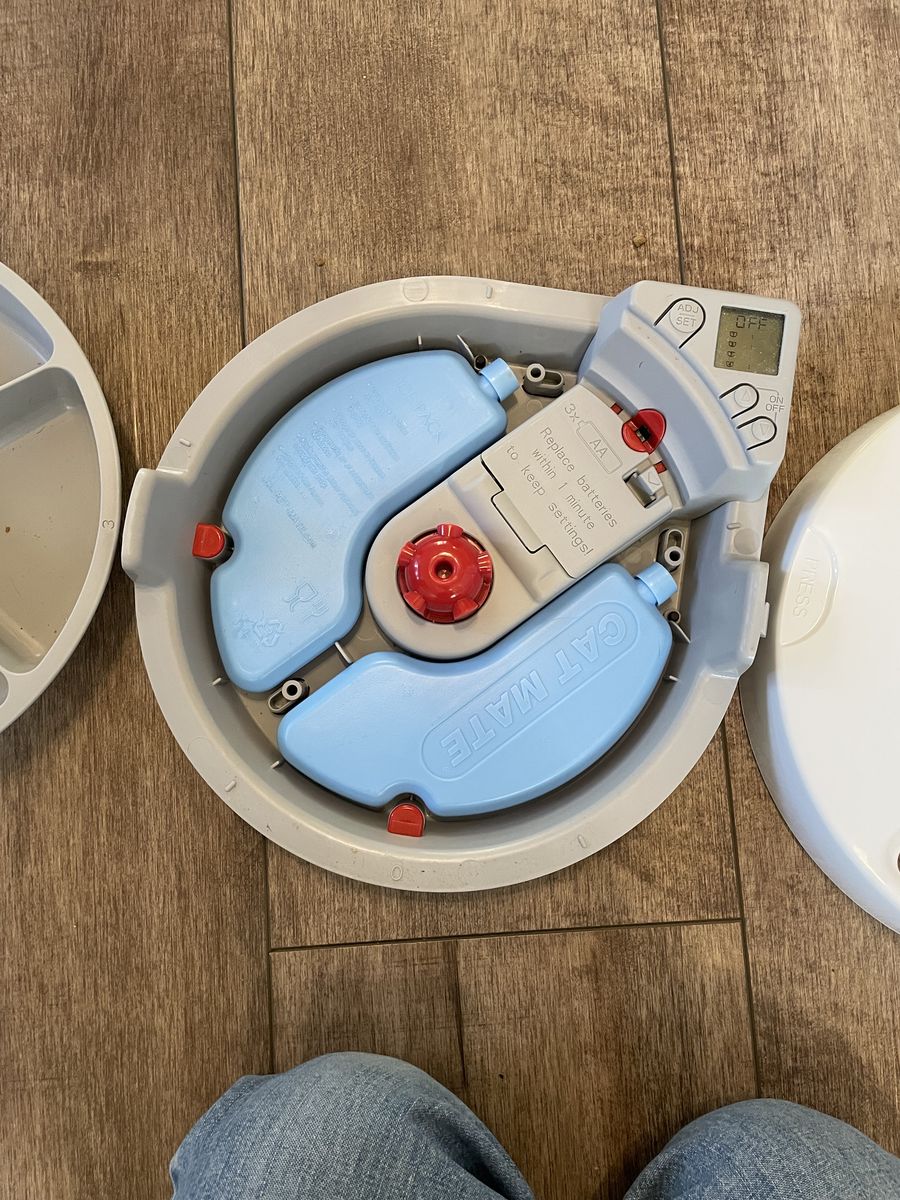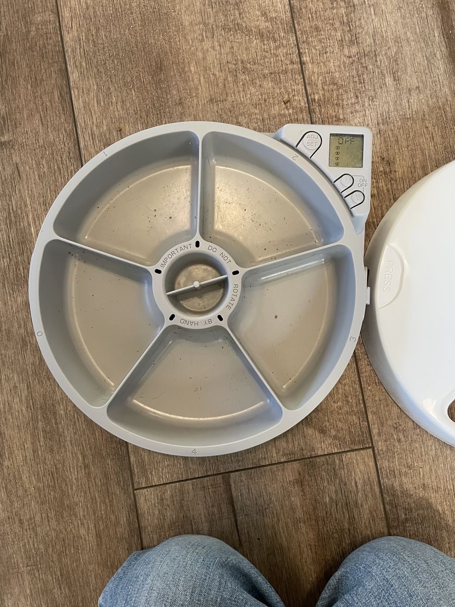 Holds 5 portions of food and has ice packs you can put under the feeder if the food needs to stay cold