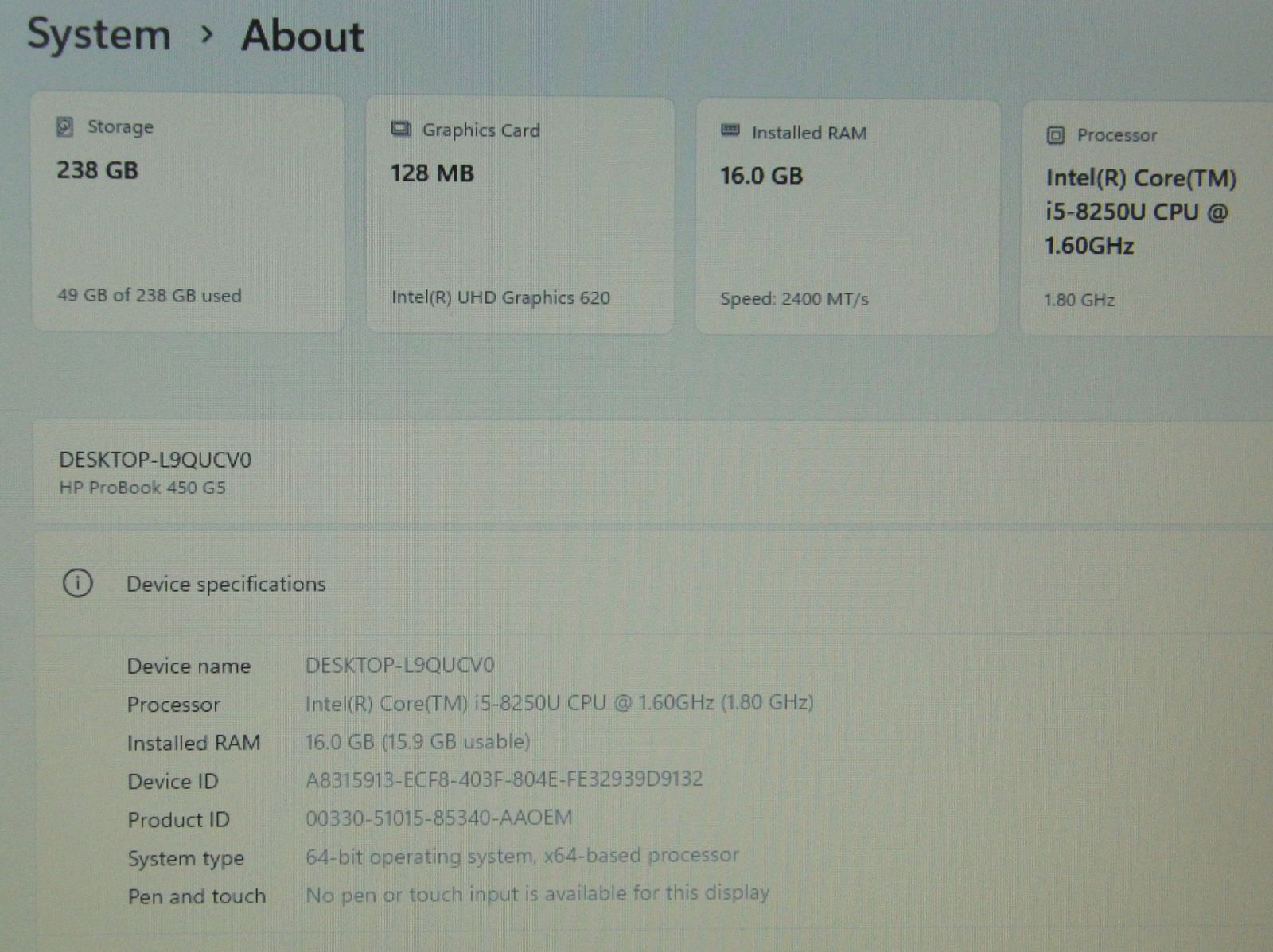 · Intel i5-8250u 1.6GHz/3.4GHz Turbo