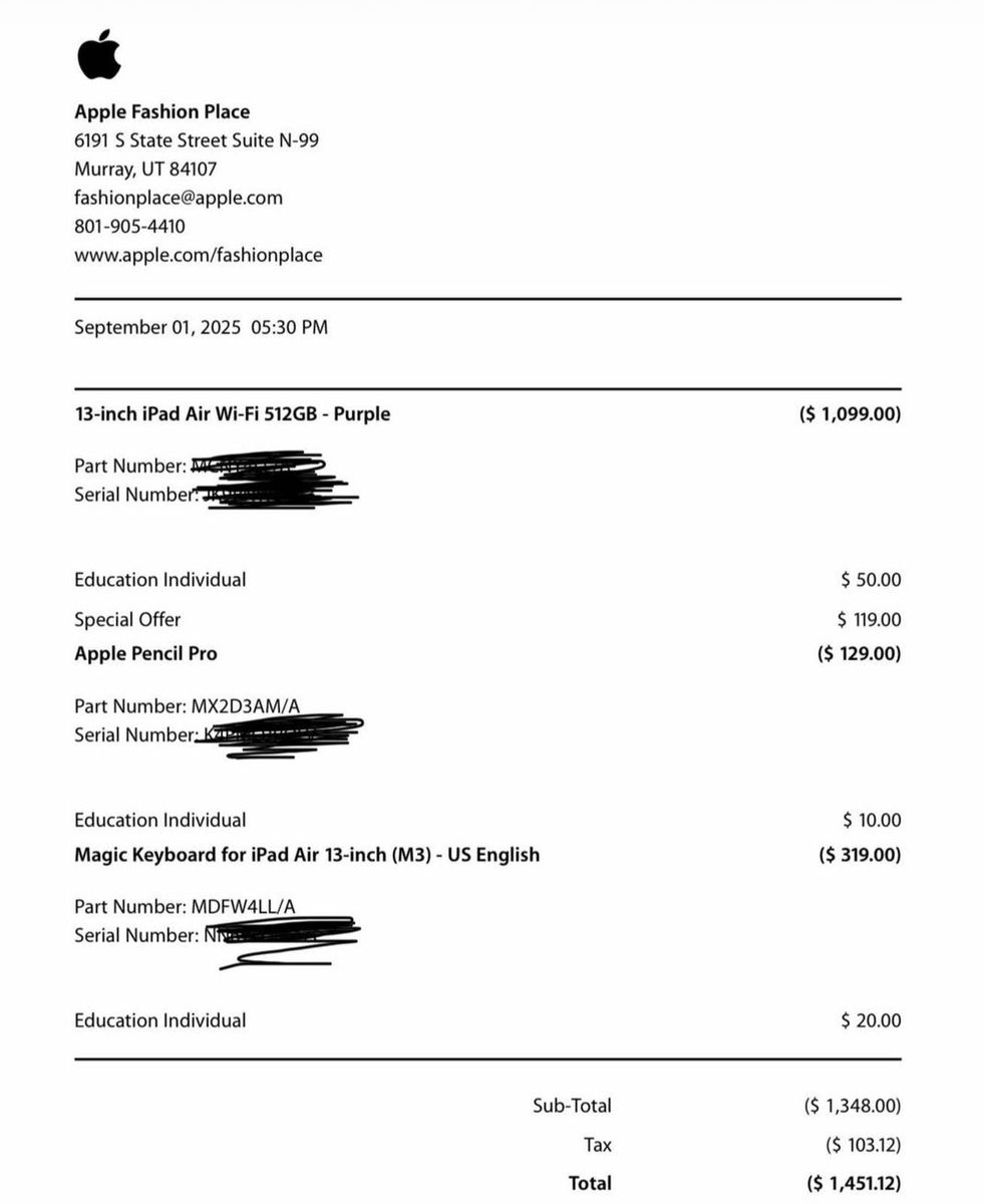 Selling my iPad Air 13-inch (512GB, Purple) with Apple Pencil Pro and a matching purple case. I originally bought it for school, but due to unexpected family circumstances, I had to leave—so it’s barely been used.