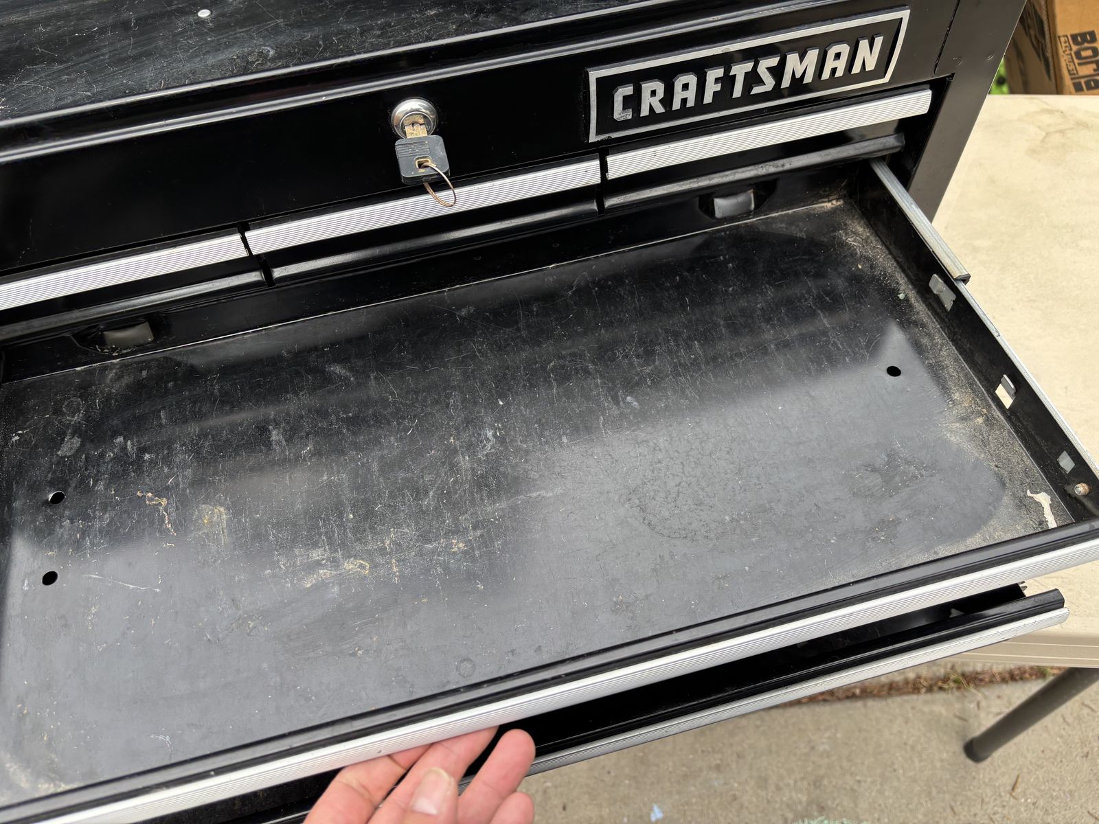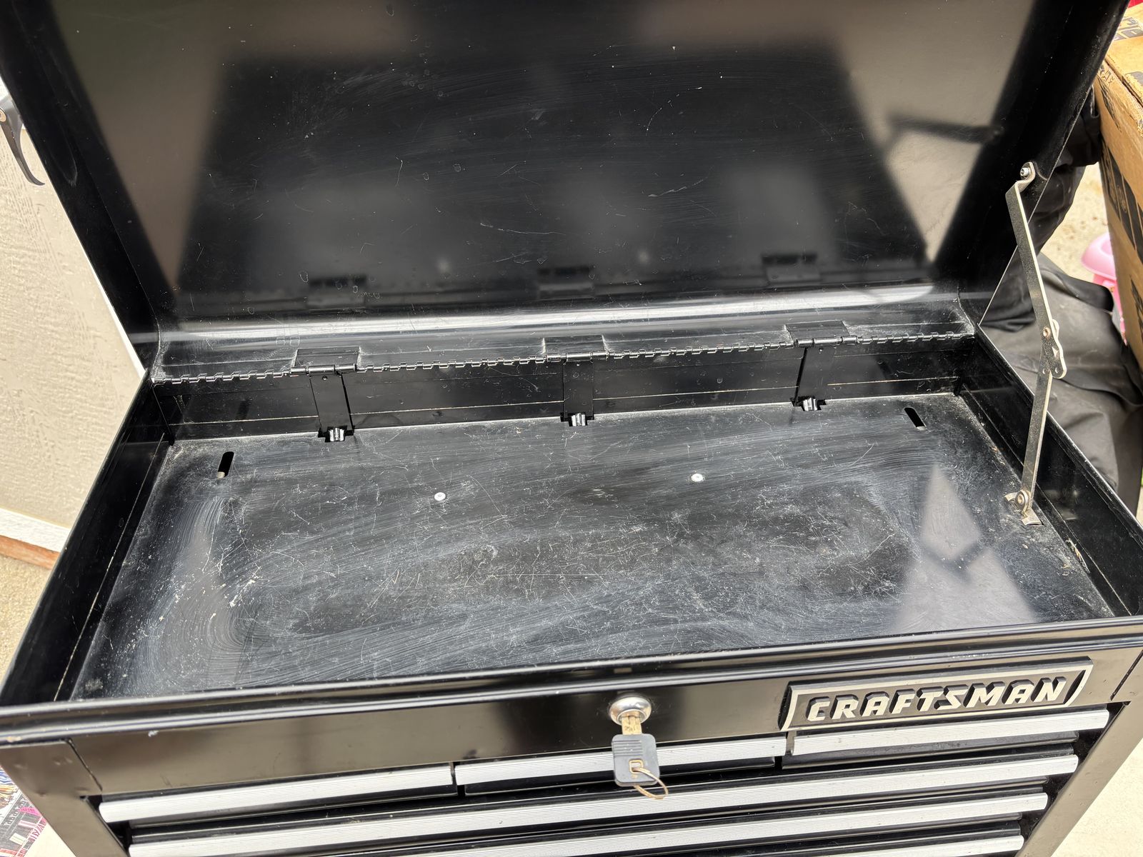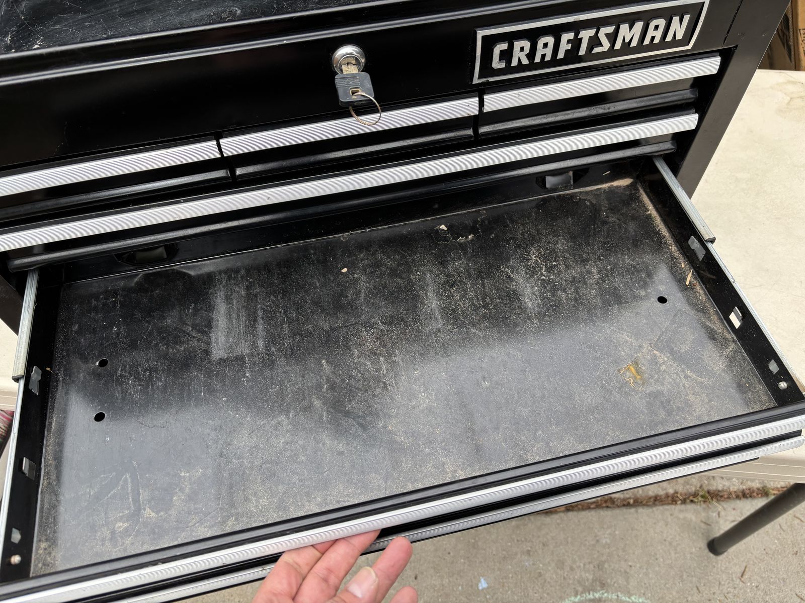 VenmoHeavy duty CRAFTSMAN 6 Drawer Ball-bearing large Steel Tool Chest Black Storage Stack with key In good condition with some scratches and scuff marks here and there. 26” x 15.5” x 12”