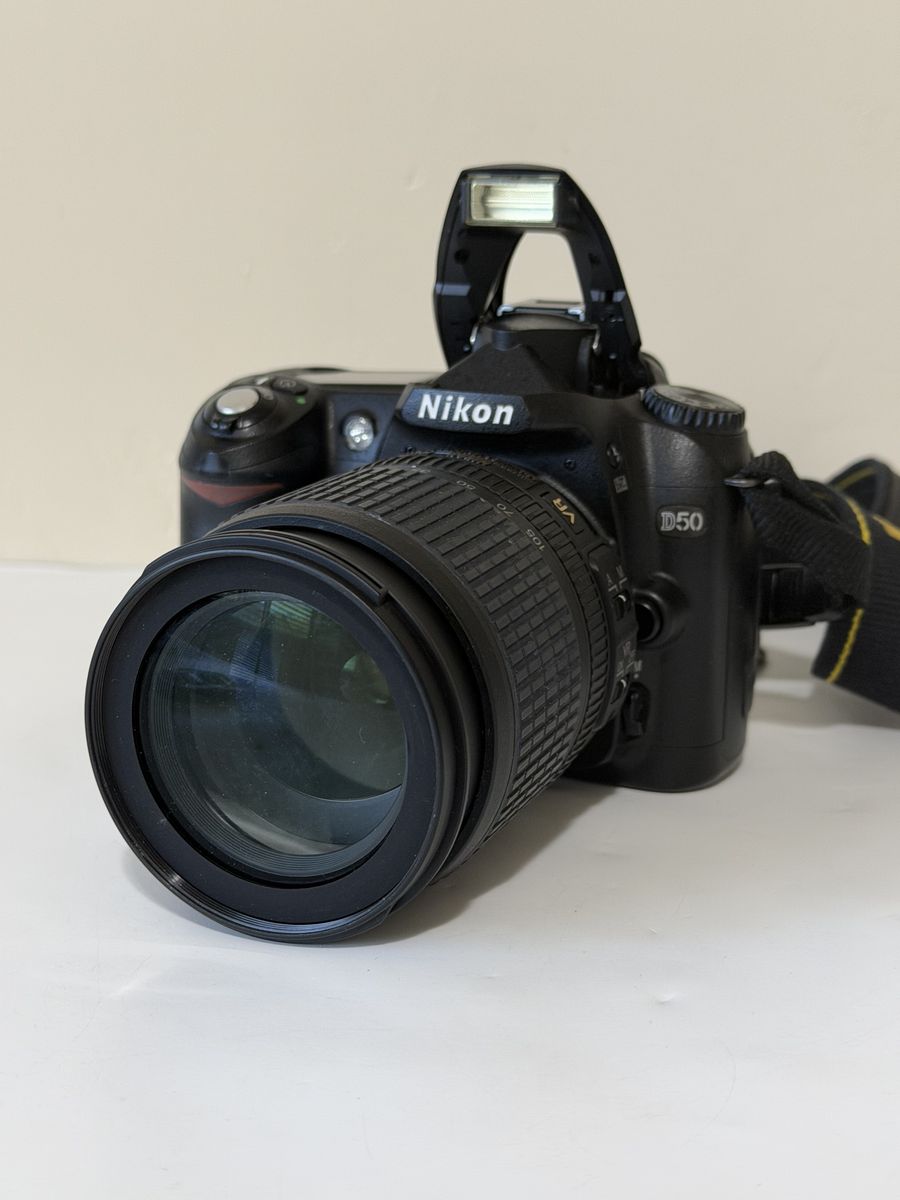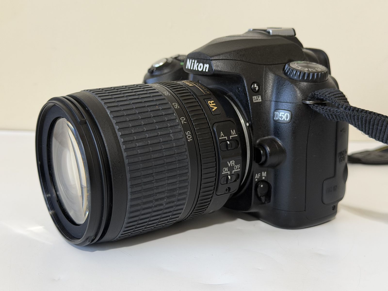The Nikon D50 Digital SLR Camera with 2 AF-S DX Nikkor 18-105mm f/3.5-5.6 Lens is a versatile and high-quality camera perfect for photography enthusiasts.