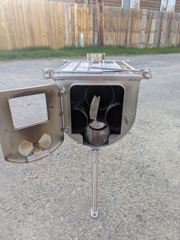 VenmoWinnerwell Large Woodlander 1G tent stove in excellent condition – used one time only. No warping, damage, or issues. Clean burn, everything works perfectly. Includes full stove setup: Stove body All chimney pipe sections (4 straight, one control flow) Spark arrestor Side racks Great for hot tent camping, Springbar, canvas tents, etc. Heats extremely well. Only selling because I upgraded setups. Located in Murray UT