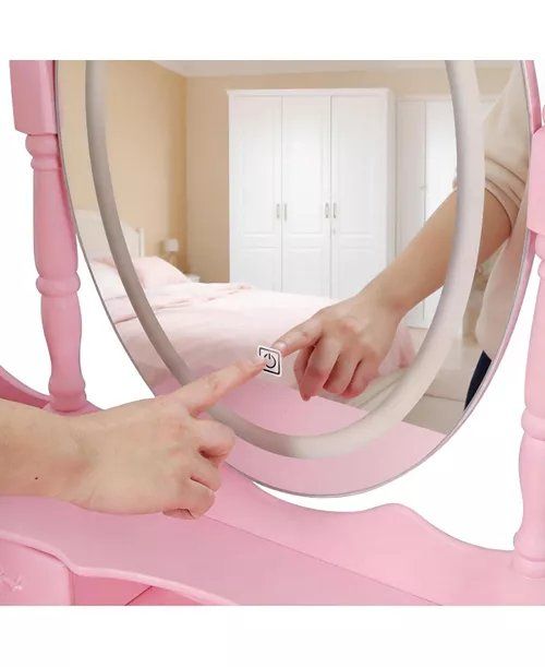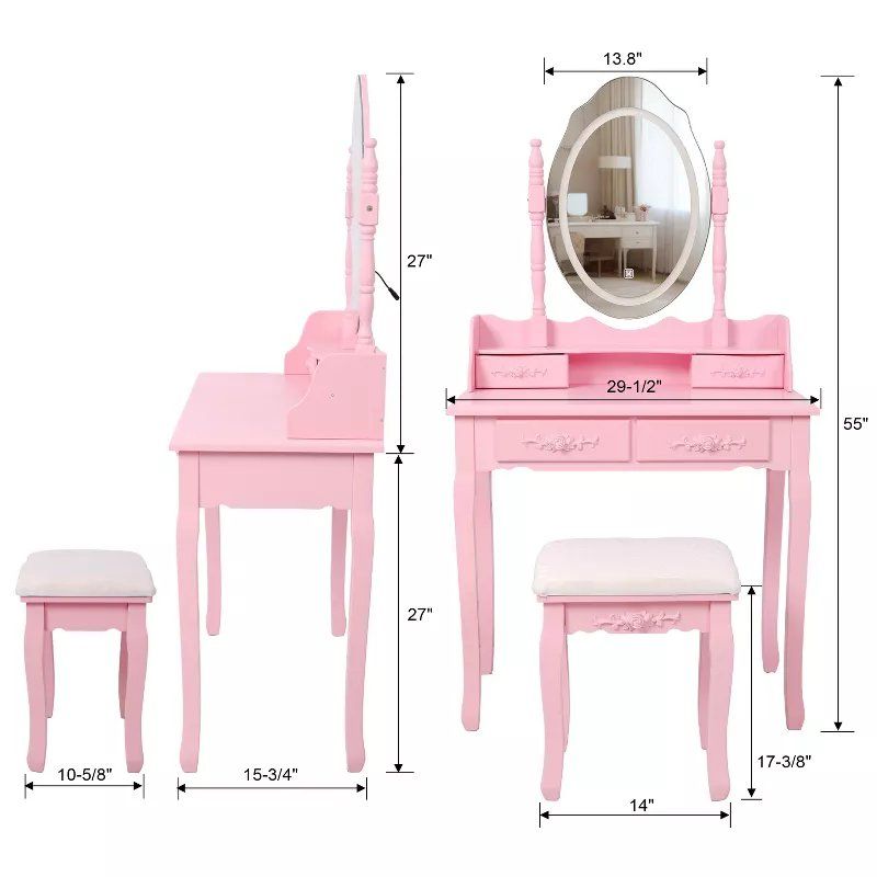 Pink Princess Vanity Desk Set with Mirror & Cushioned Stool,Light Modes,4-Drawer Wooden Makeup Vanity Table for Girls' Bedroom, Dressing Table with Ample Storage new in box