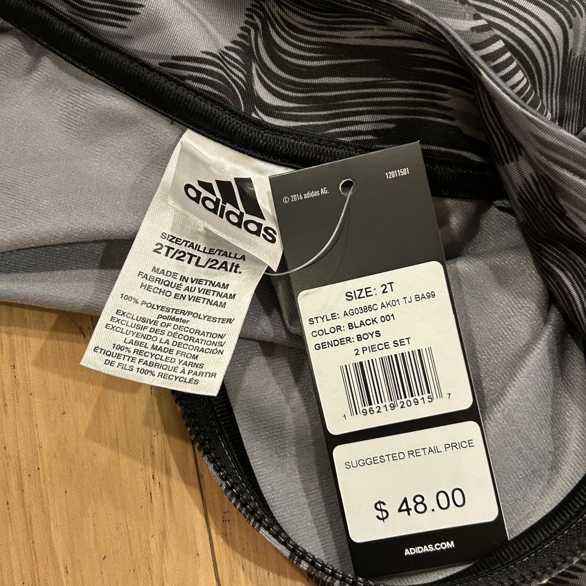 NWT Adidas Athletic Track Suit Set - Includes Gray and Black Zippered Front Jacket and Black Pants - Boy’s Size 2T - brand new with tags. MSRP $48.00