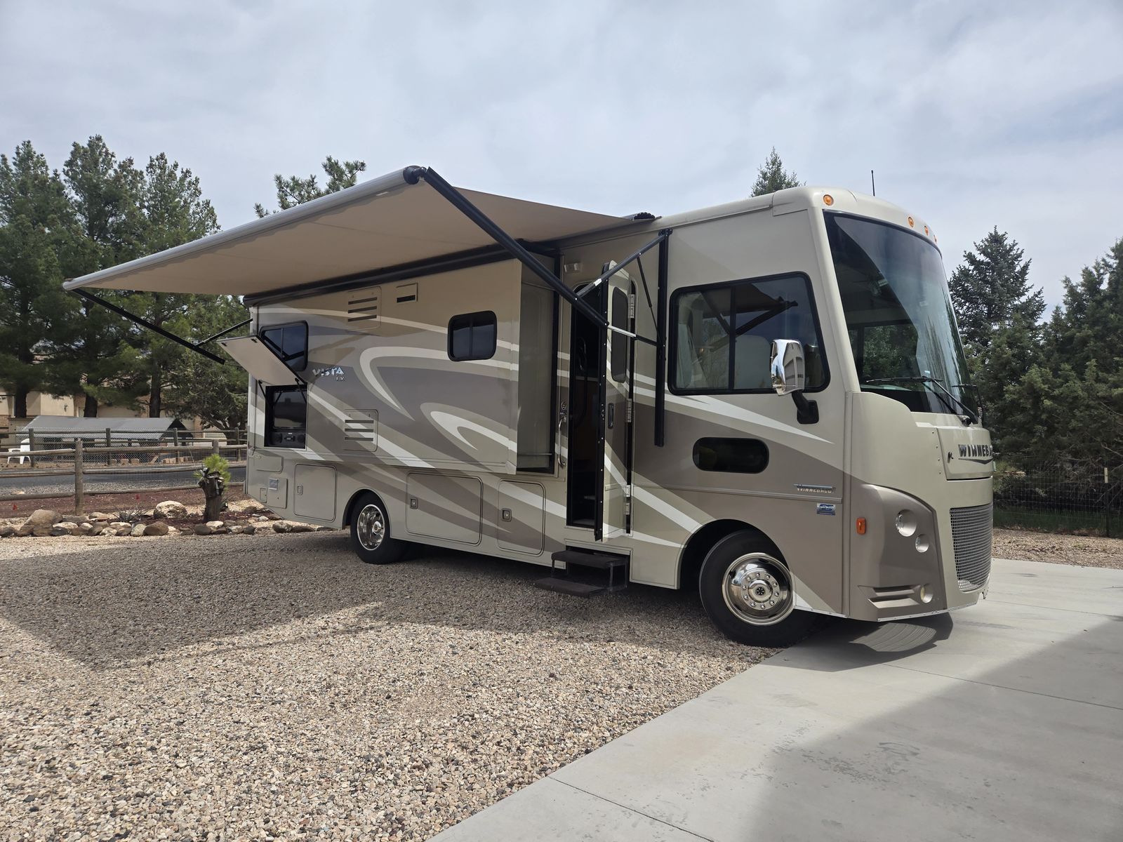 ZelleI know it's a cliche, but with only 31,500 miles, this RV runs and drives better than new (See Details). The 27N is among the shortest, most maneuverable Class A RVs available, and, due to excellent floorplan, sporting 3 slides, the LX 27N is shockingly spacious inside! You will also enjoy the kitchen's large counter space and huge storage. With its short length and tight running radius, this RV is at home in National Parks, USFS Campgrounds, or just Boondocking. Our RV has been stored inside for most of its life and has seen exceptional care, maintenance, and upgrades. Winnebago has a reputation for quality and excellence in documentation and the supply of replacement parts. 2016, was the first model year for 6-speed Transmission, and of course is a pre-COVID build. A detailed parts Microfiche is available online, as is parts pricing and specs. Rated to tow 5,000 lbs., carry 64 gal. fresh water, and up to 80 gal. of gas.