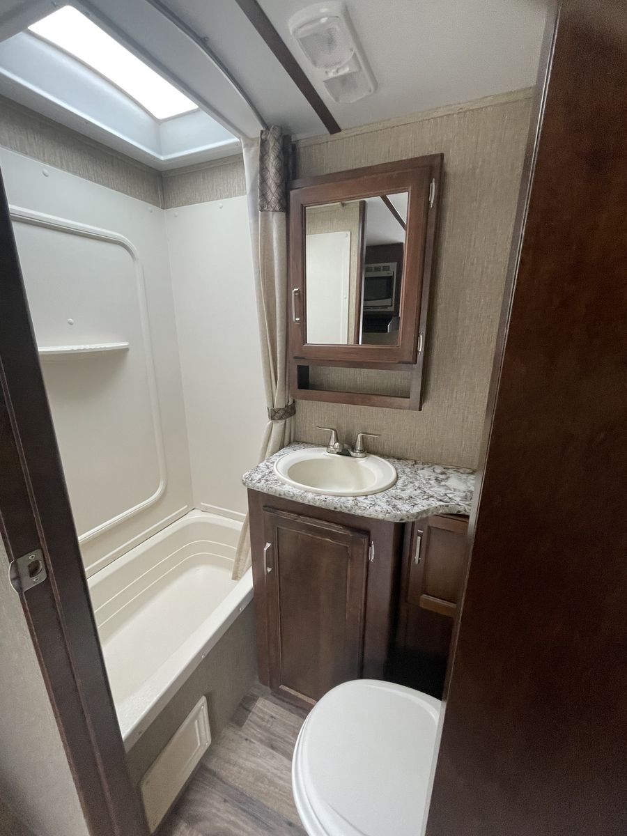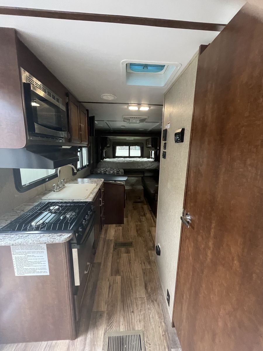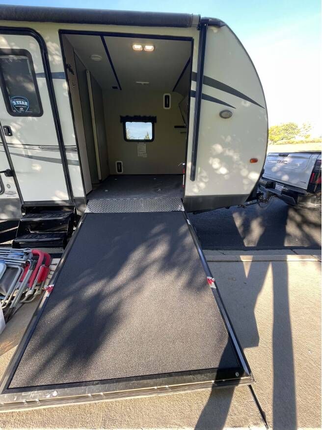 Clean and well-maintained toy hauler that sleeps 6. Great layout with rear king bed slide and front toy garage with flip-down bunk beds. Perfect for camping trips or hauling ATVs, 2 seater UTV, E Bikes and gear. 28ft 3in length