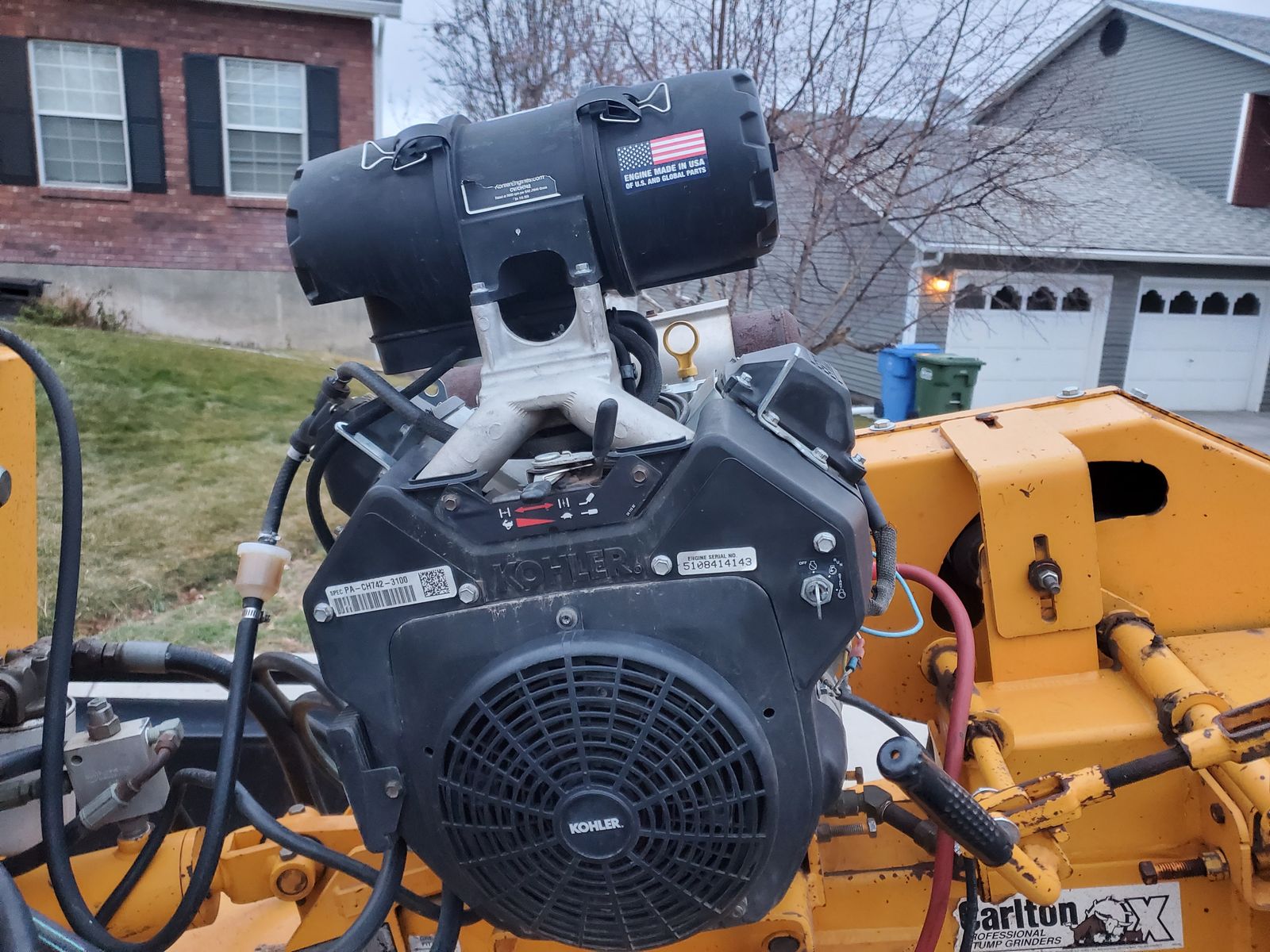 Carlton 2500-4 Stump Grinder. Has a 26 hp Kohler motor with new piston rings, running strong. New battery and cables. 900 Series Green Teeth. 540 hours. Performs as it should. Pocatello, Idaho.