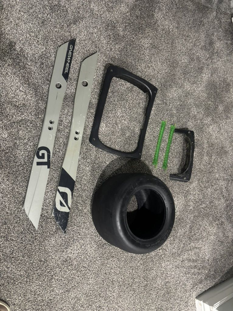 A set of rail guards (if your heart desires to change it, I also have the adapter for the green wheel cover.) (it has the recurve rail guards on it right now)