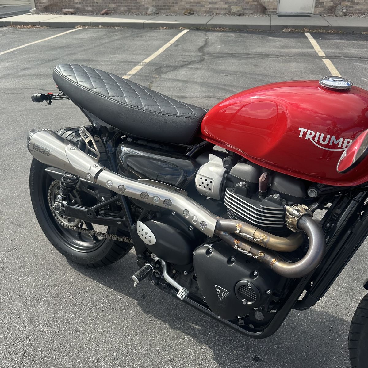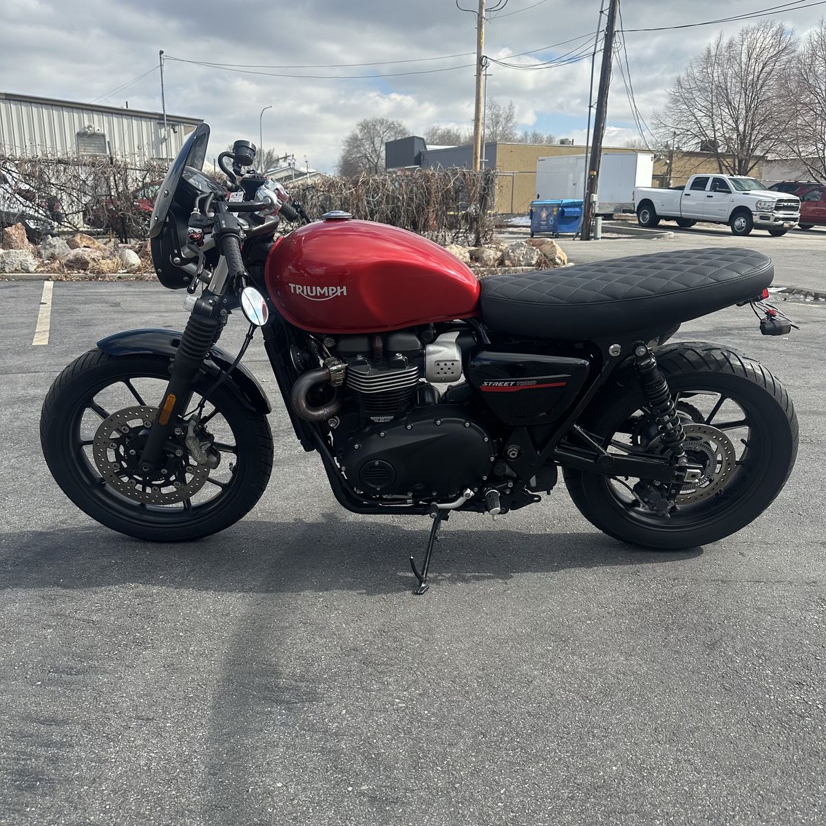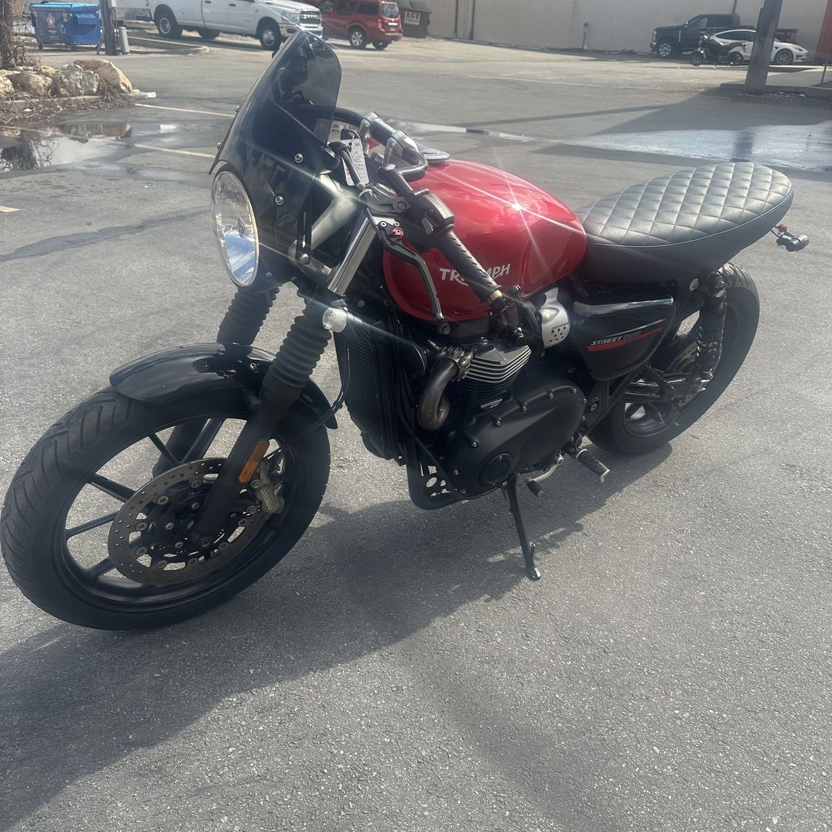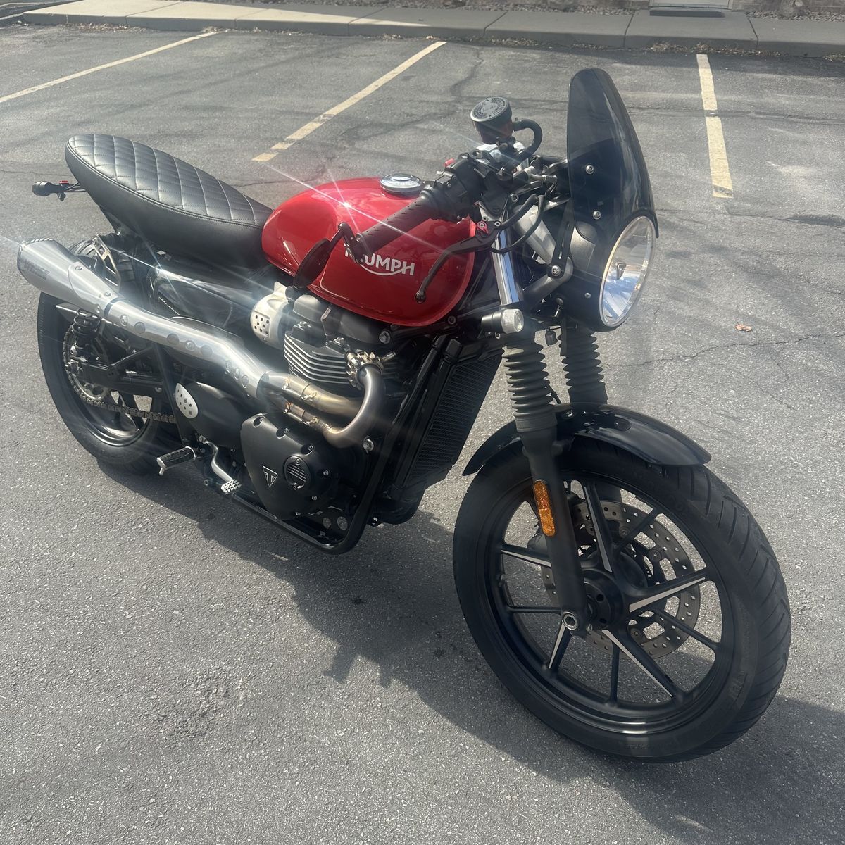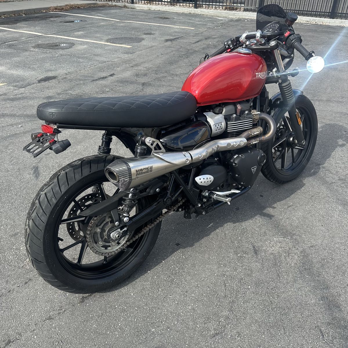 The 2019 Triumph Street Twin is powered by a 900cc High Torque Bonneville engine, delivering smooth, responsive power with modern classic style. Ride-enhancing tech includes ride modes, ABS, and traction control for added confidence. This one has just 8,300 miles, a Vance and Hines Exhaust, and a clean title! Lightweight and agile, it’s ideal for urban commuting and weekend backroad carving.
