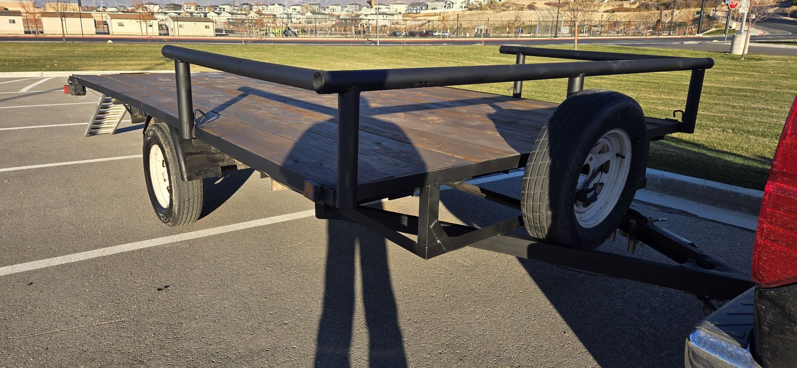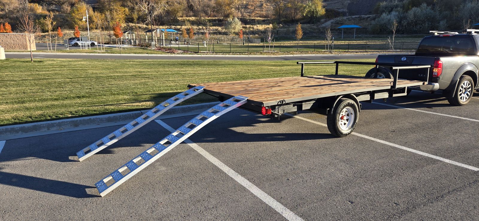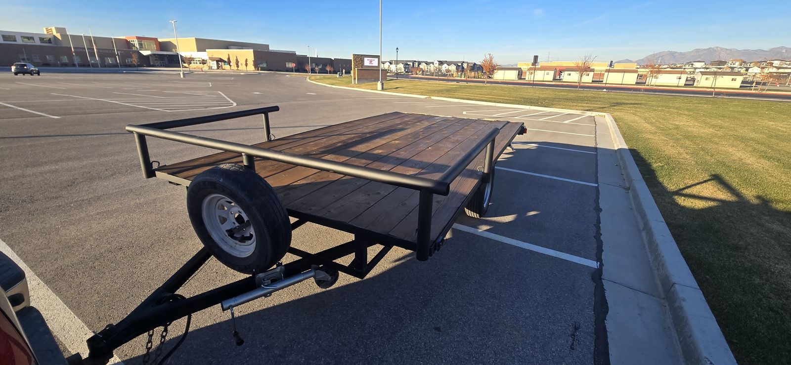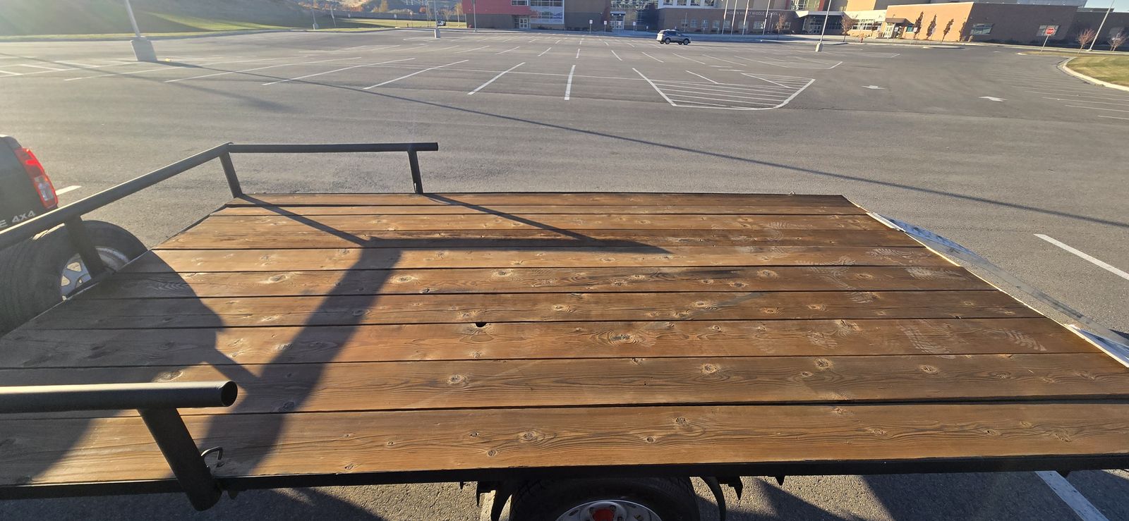 This trailer is clean and works without problem. It has new paint and wood that is in good condition with new treatment. The rims and wheels are new. Ramps are included and have built in storage underneath the trailer that can be locked. if you have questions or an offer please message me. Thank you!