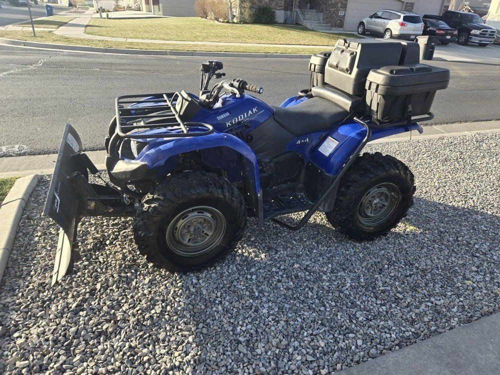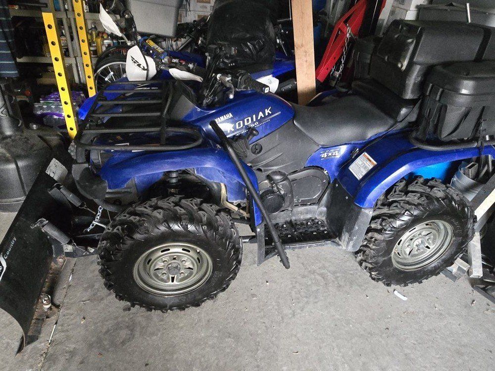 2005 Yamaha Kodiak in excellent condition. Has 1614 miles. 226 hrs. Stored in the garage. Fluids changed regularly. New Tires. Snow plow, rear seat/storage.