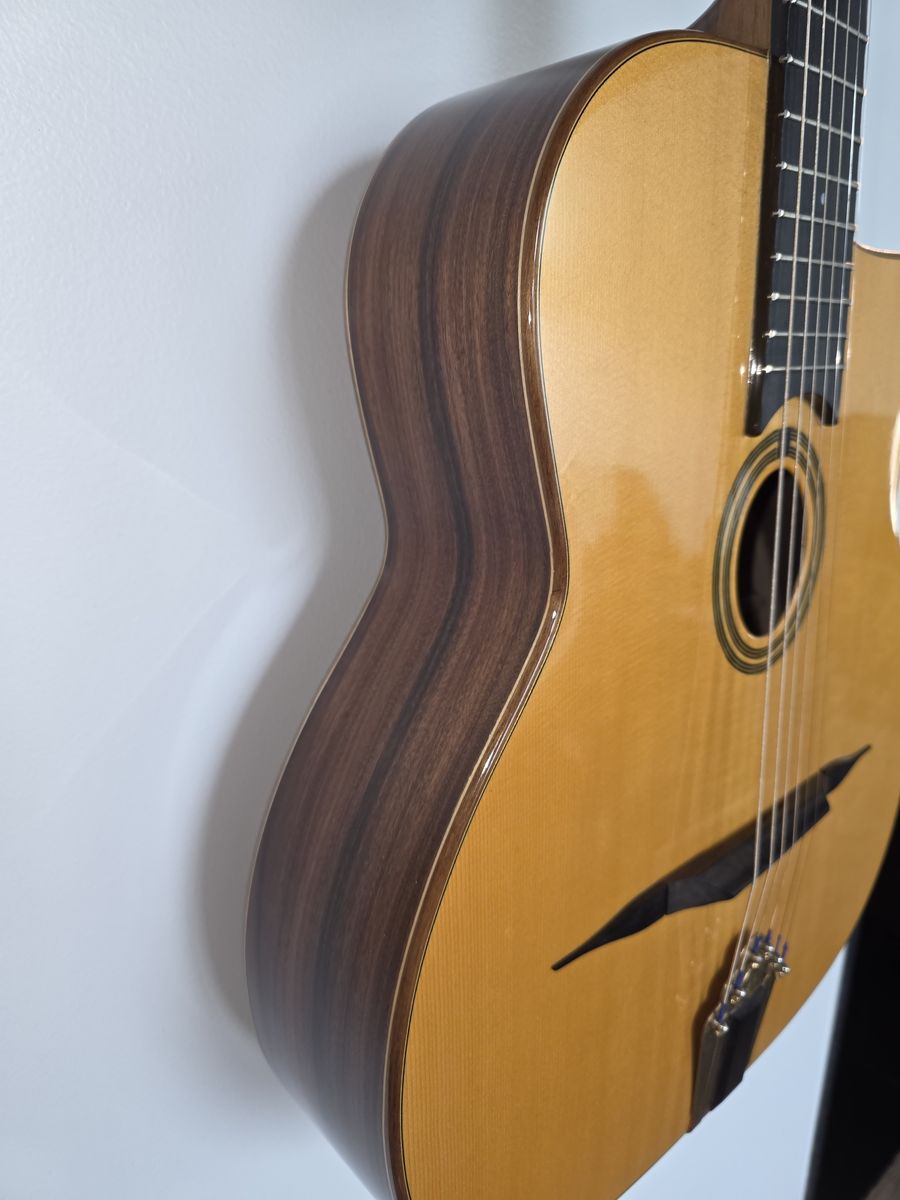 This instrument possesses a warm, complex tone that is unusually rich and full in character. It doesn't have any of the brasher qualities that many Selmer type guitars typically have but is instead, well balanced and mellifluous in tone. These are exceptional qualities in any Gypsy guitar, but even more so in an instrument priced under $3K. If you're a player looking for great tone without breaking the bank, then this is it!