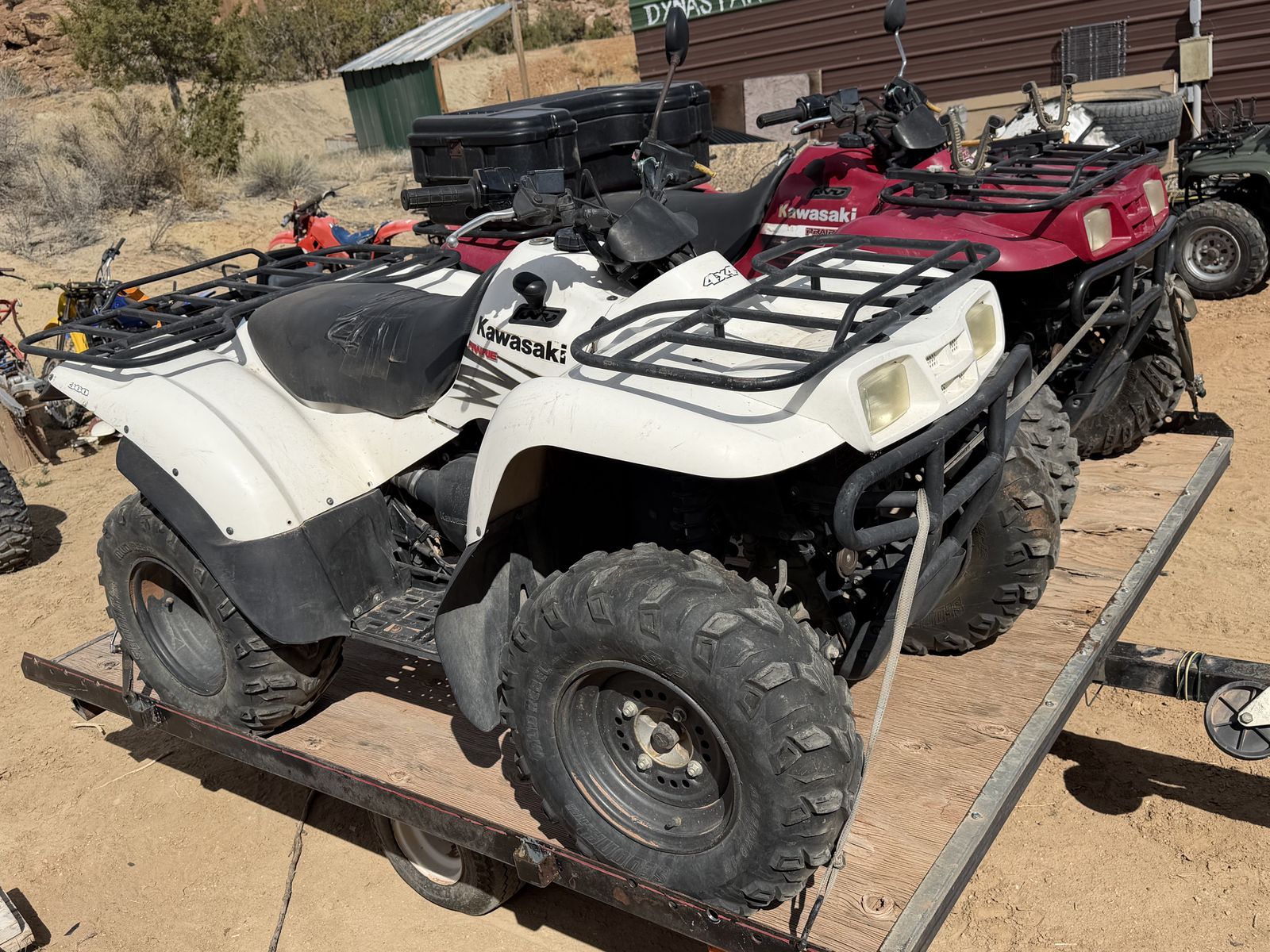 I have for sale a pair of Kawasaki Prairie 360 four wheelers and a two place trailer. They do not have hour meters or odometers. one is a 2007. One is a 2006 red one run runs fairly well. The white one does not run as good likely needs the carburetor cleaned and they come with a bill of sale only asking $3200 or best offer pay located near Roosevelt.