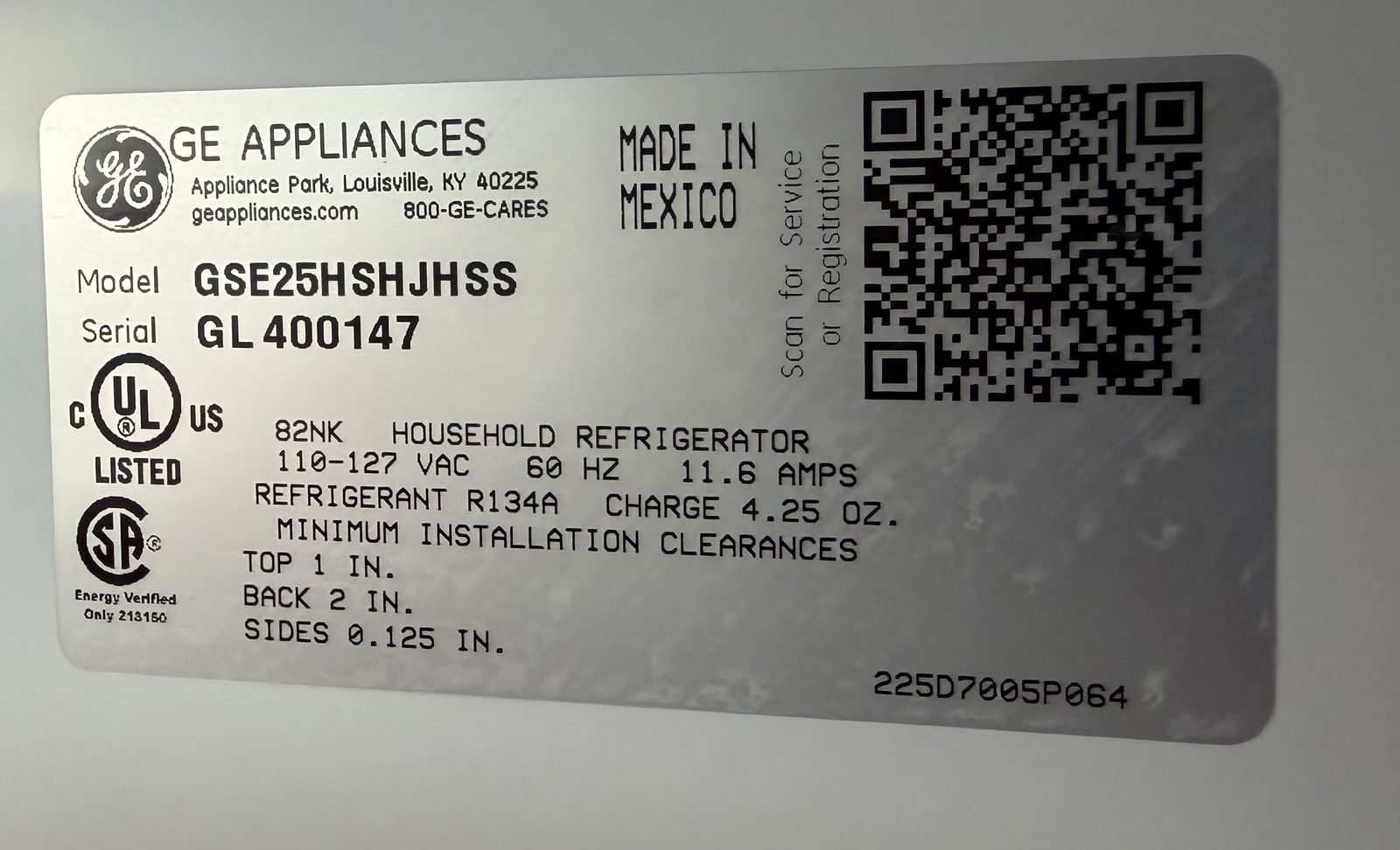 GE model GSE25HSHJHSS excellent working condition, ice maker and water dispenser