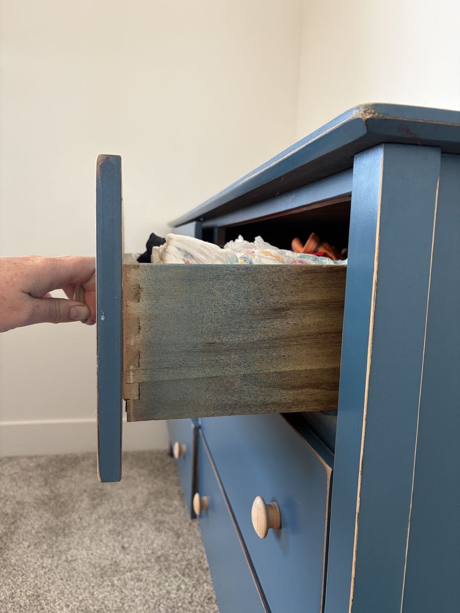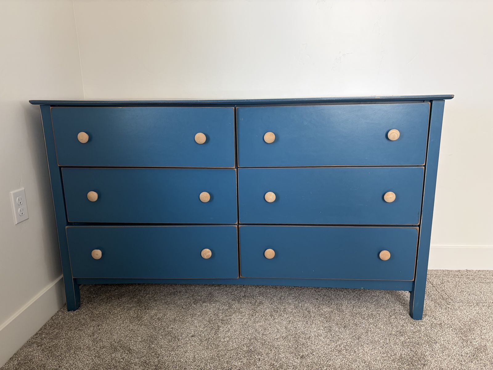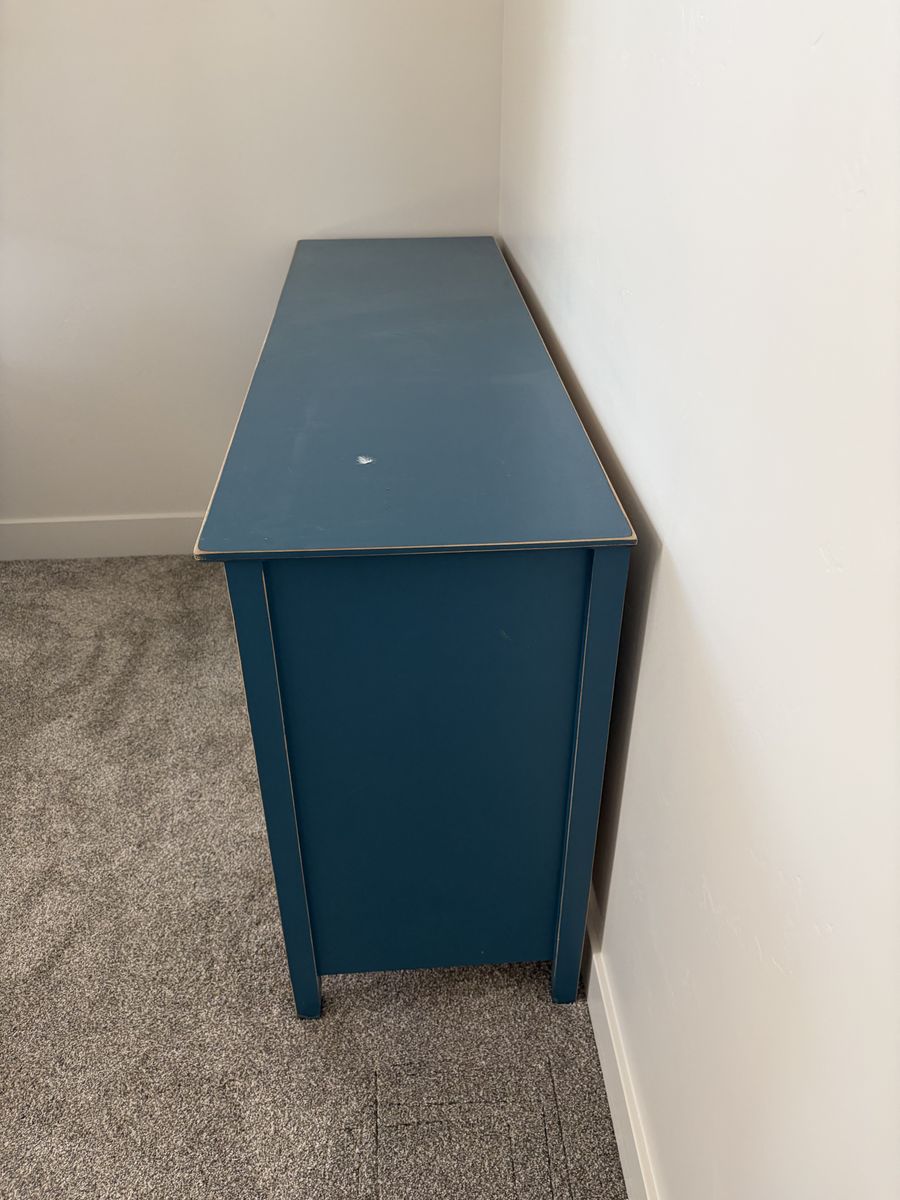 PayPalBeautiful dresser in great condition. The drawers are dovetailed, no metal hardware but they come in and out smoothly. 18” deep, 56” long, 32.5” tall.