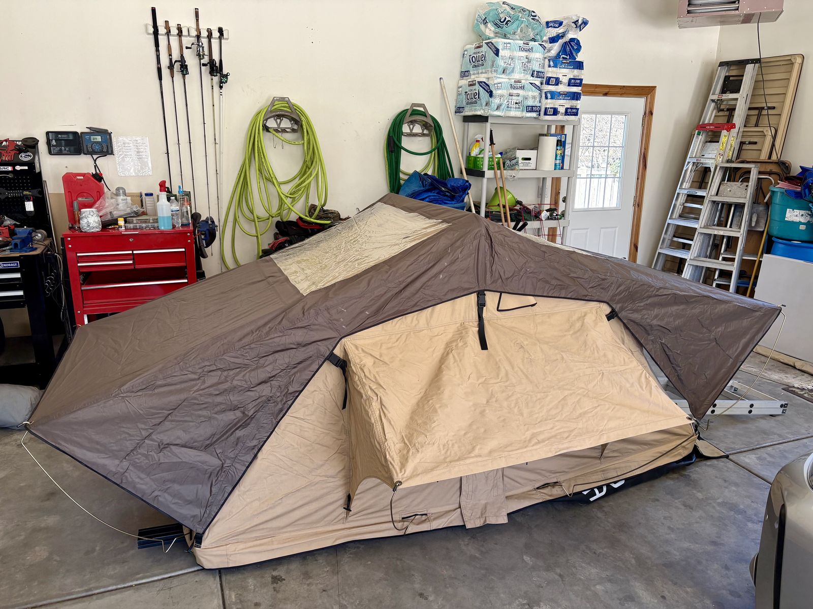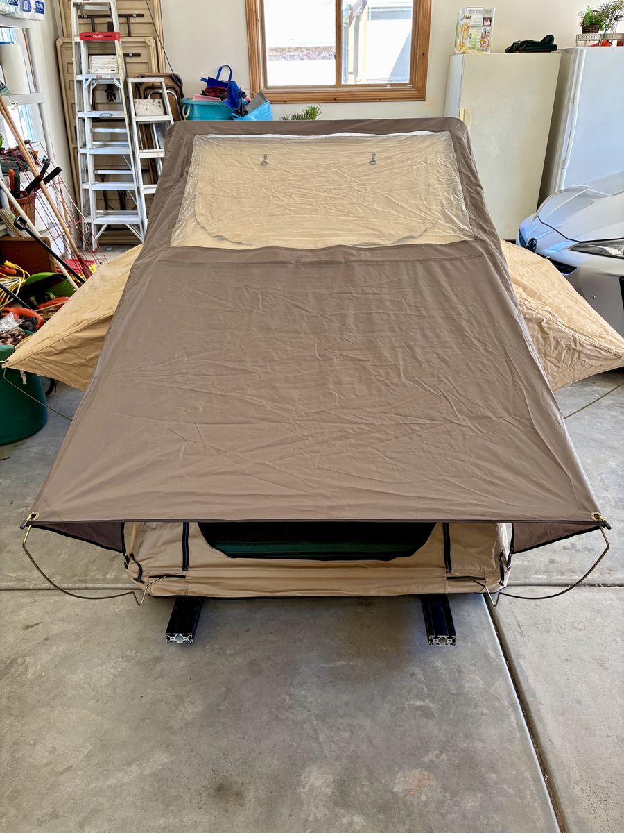 I bought this tent about 4 years ago. It is in great condition. The outside cover is the most worn part but still has lots of life. It is on its second outside cover. Comes with a big bag of extras I got when I bought it from the factory. Zippers, material, extra rainfly, etc. I have a Billie bar setup with all the hardware needed for a 2018 Tacoma that you can either buy with it or not. I would take $800 for the tent and $500 for the mounting system if someone wanted one or the other rather than both. OBO