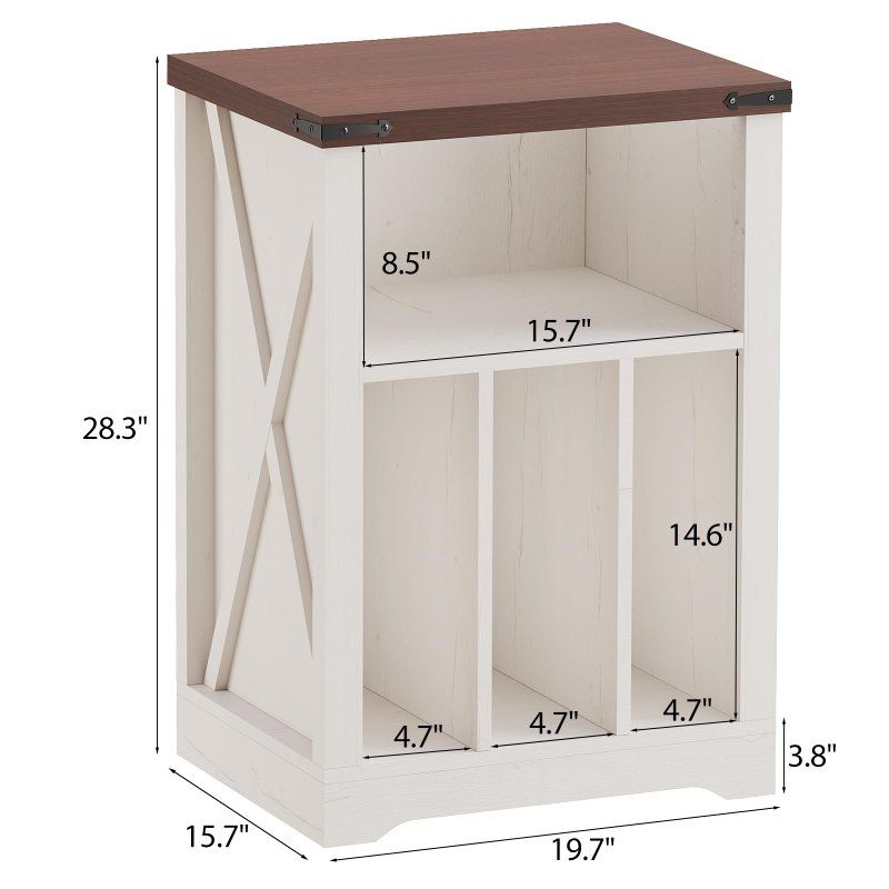 New in box BEWISHOME Record Player Stand with 3 Cabinets, Wooden Turntable Stand with Vinyl Record Storage Record Holder, and Organizer Table, for Living Room Bedroom, White, Antique KCZ01W