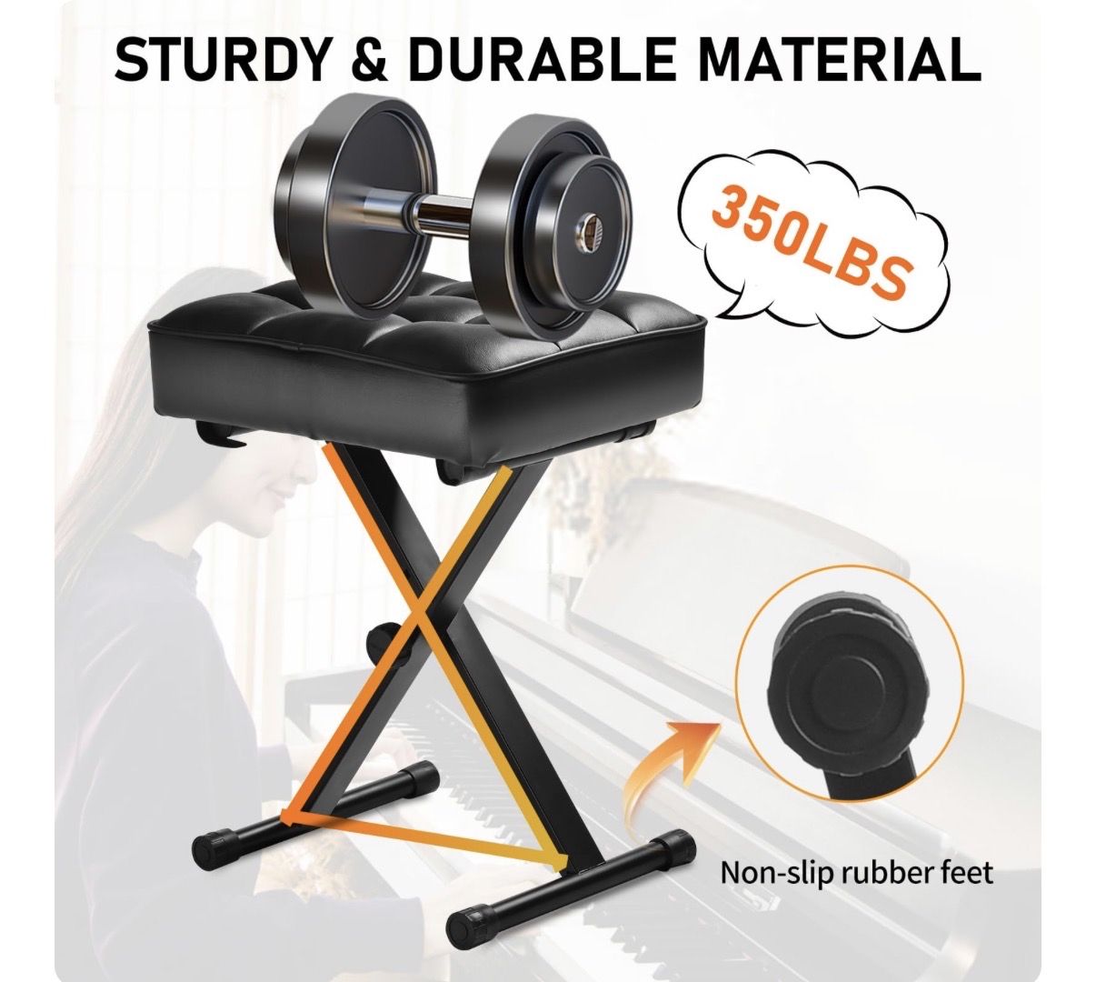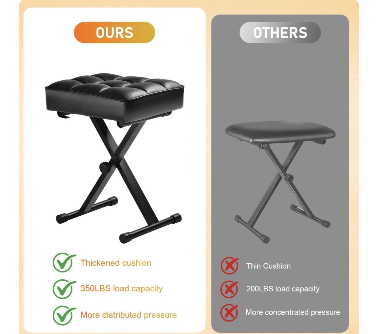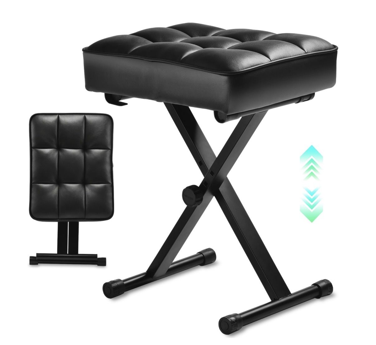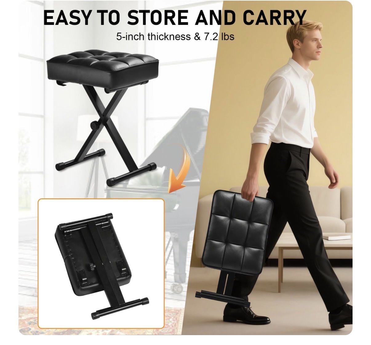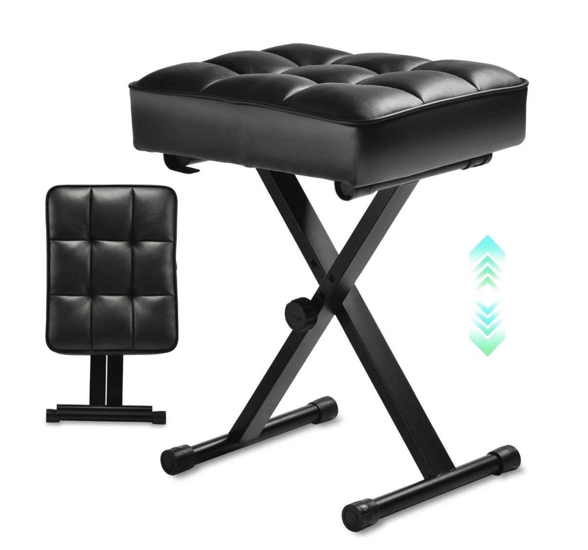 VenmoKeyboard Bench Adjustable Piano Stool - Extra Comfortable Piano Bench with High Rebound Sponge Cushion,No Deformation,Superior Support,X-Style Portable Foldable Piano Chair, 3 Height Adjustment(Black)