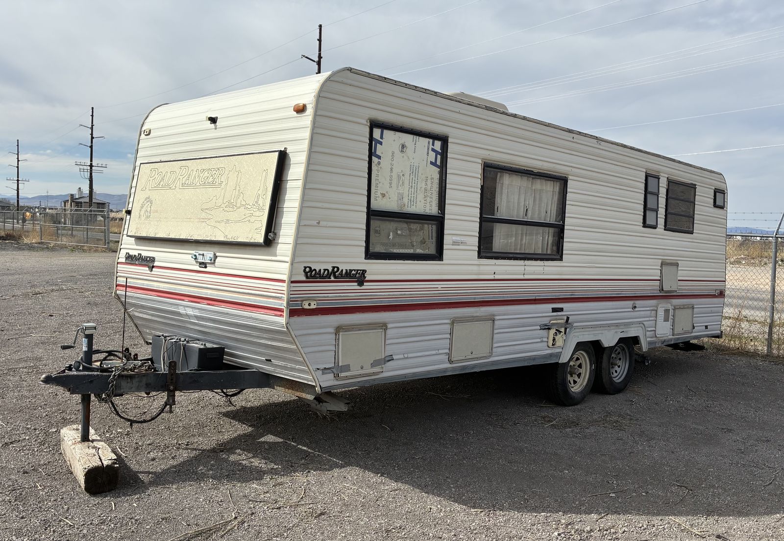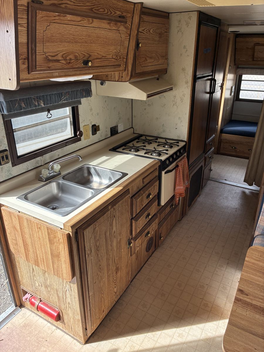 It has a new water pump and water heater. Toilet, sink, stove and electrical all work great. All 4 tires and both stabilizer jacks are in great conditio. Fridge and freezer work most of the time.