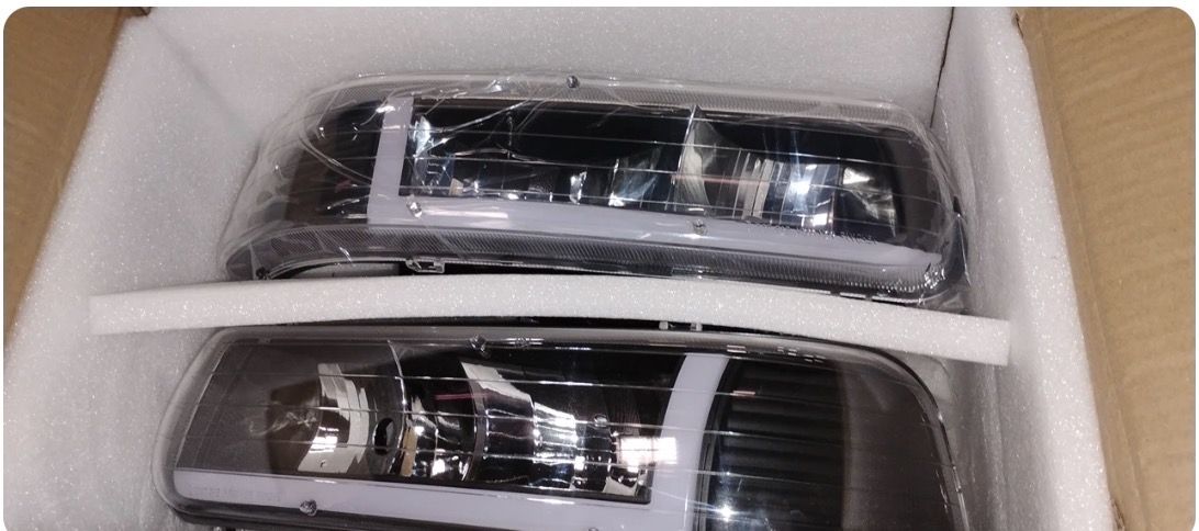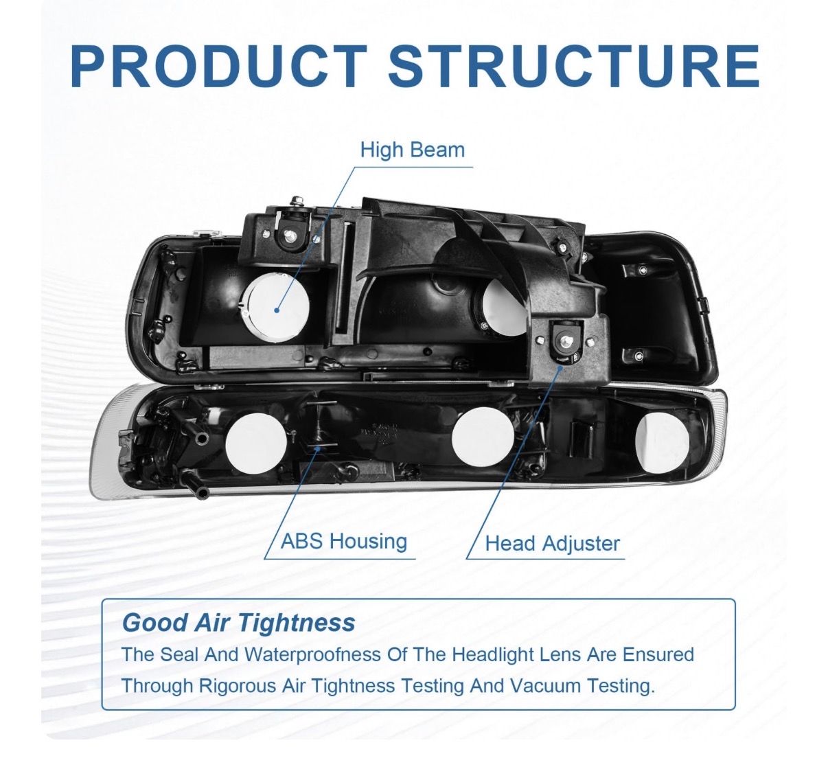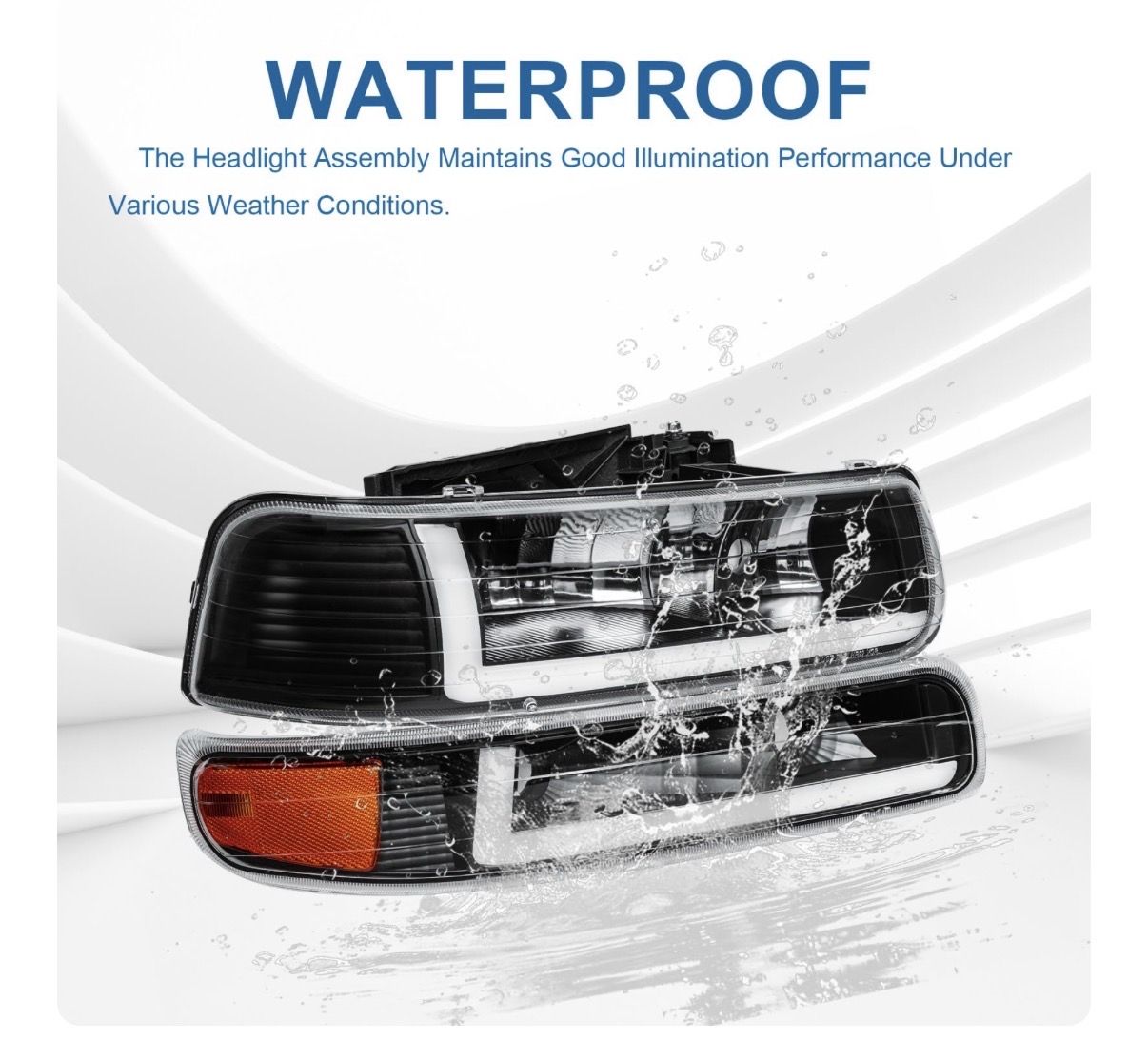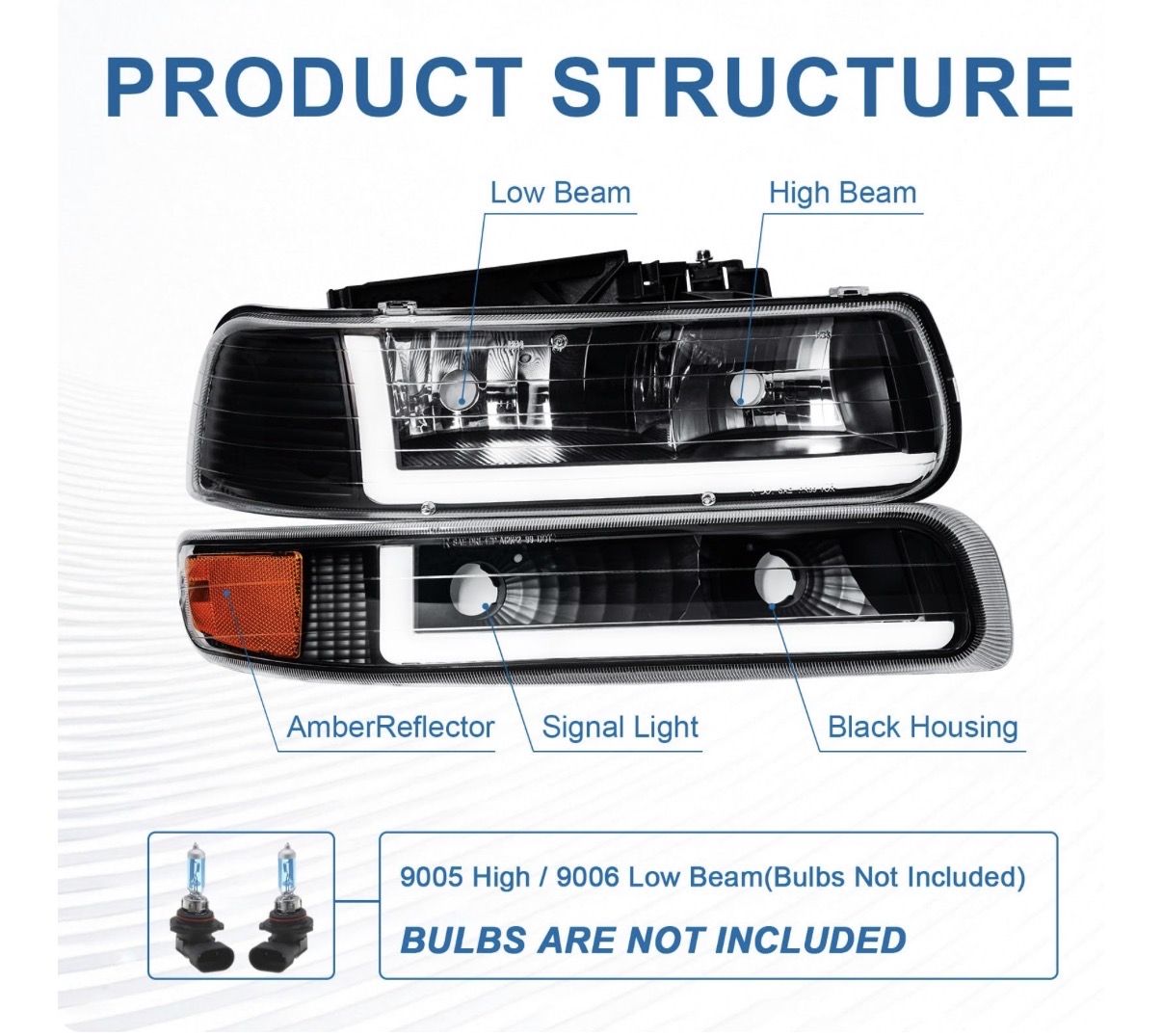Fullux LED DRL Headlights Assembly for 1999-2002 Chevy Silverado 1500 2500 1500HD 2500HD 3500/2000-2006 Tahoe Suburban 1500 2500 Replacements Amber Reflector Black Housing