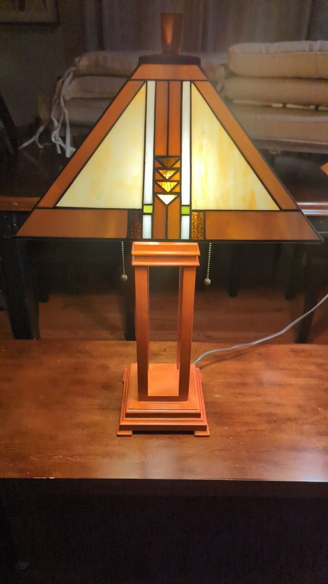 Set of Robert Lewis Tiffany lamps. Both work perfectly and are in great condition. Real wood bases and handmade stained glass shades. Asking $300 for the set. Brand new they are $269 a piece. I have included a picture of the price of the item new. Great price for a set of beautiful collectibles.