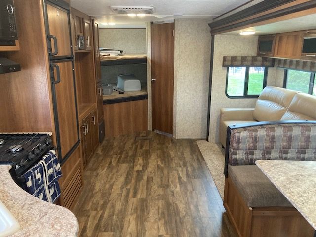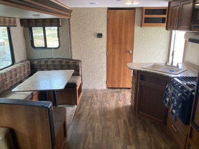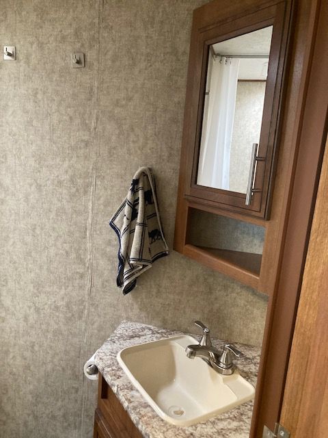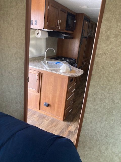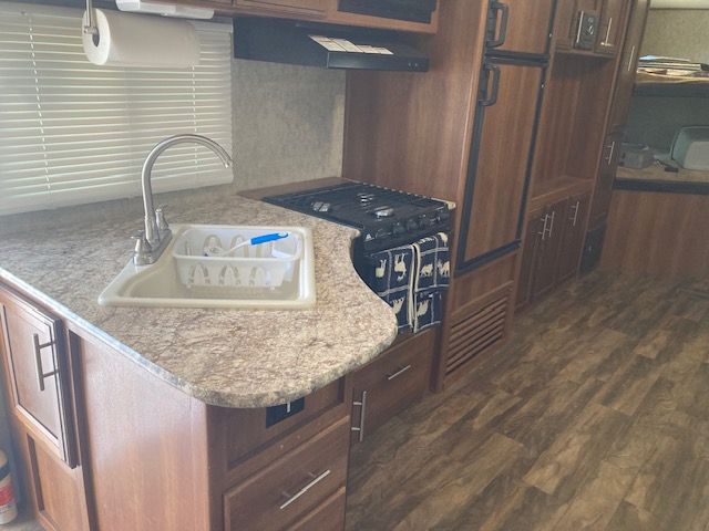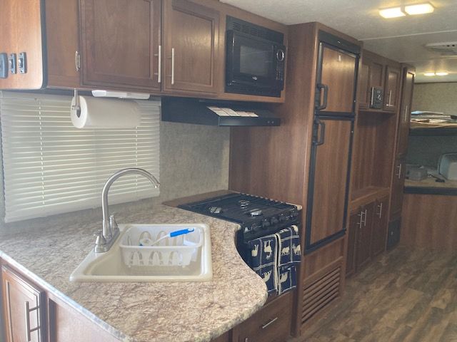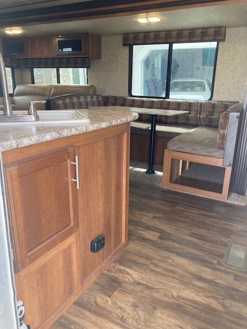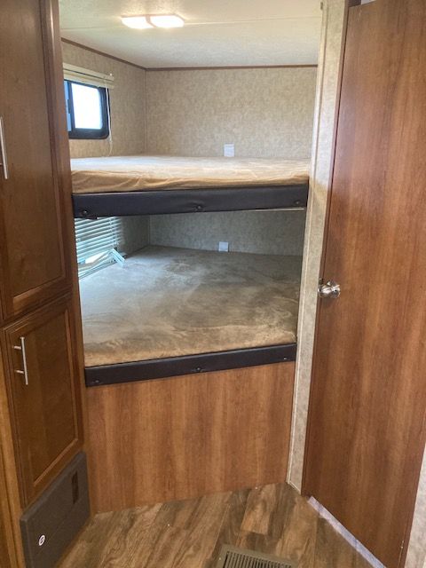 This is a well-maintained 2018 Forest River Avenger travel trailer, perfect for family adventures or weekend getaways. This spacious RV offers a cozy and functional layout with a comfortable queen-sized bed (the pictures show a twin bed but it now has queent mattress), double bunk beds, a pullout sofa, and a convertible dinette for additional sleeping space. The fully-equipped kitchen features a refrigerator, stove, oven, microwave, and ample counter space to prepare meals on the road. Plus, the modern bathroom includes a shower, sink, and toilet for all your on-the-go needs.