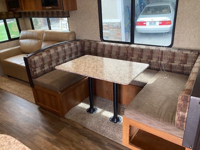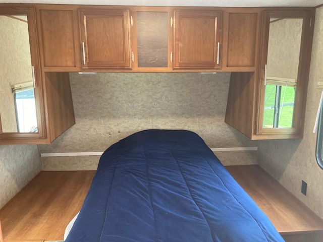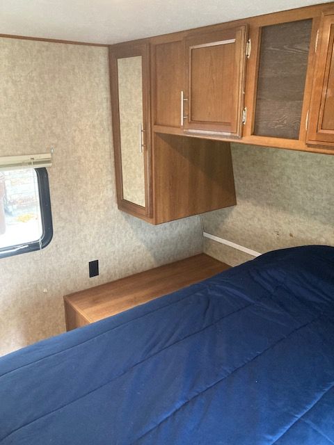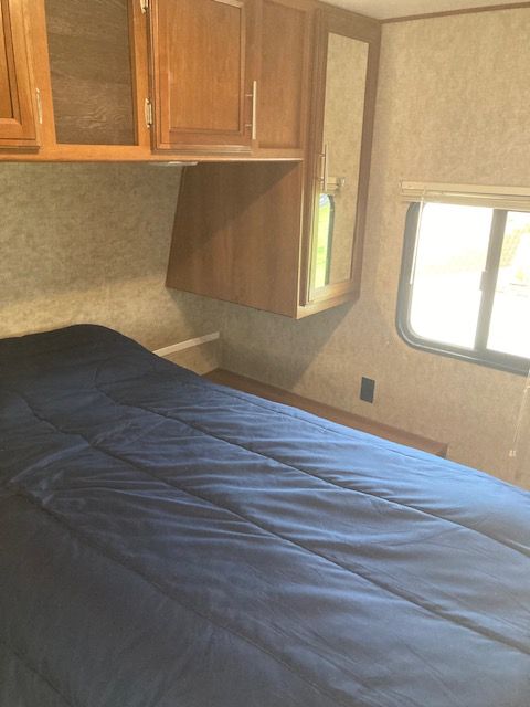 It boasts a power awning, outdoor speakers, and plenty of storage space both inside and outside. The upgraded entertainment system includes Bluetooth stereo, and surround sound, so you can unwind after a day of adventure. With a lightweight design and easy towing capability, this RV is perfect for couples or families who want to explore the open road without the hassle of a large motorhome. It's also equipped with a gas/electric water heater and a furnace to ensure comfort in all seasons.