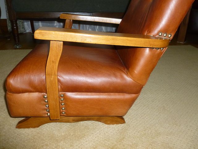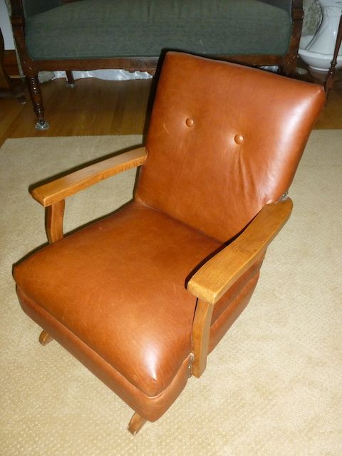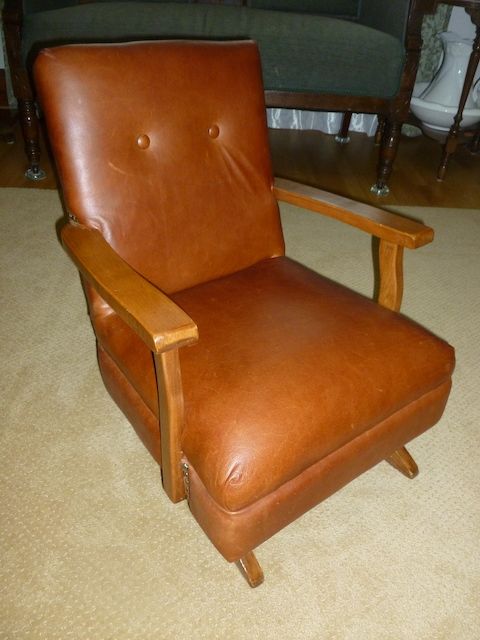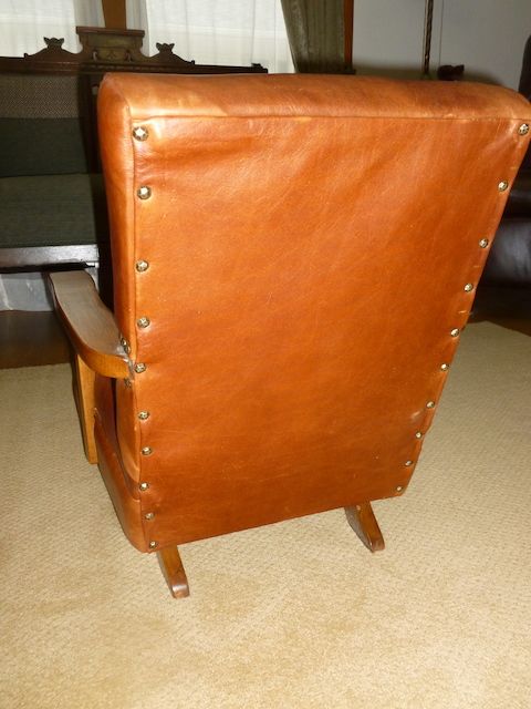 VenmoThis is a one of a kind child's rocking chair. It has a medium brown color leather on it. It is in Great condition. It would be adorable to use for a photography studio, or displayed and used in a home. It is 22 inches tall. The arms are 18 1/4 inches across x 14 inches deep. The seat is 15 inches wide x 14 inches deep. The wood is solid and in great condition also. This chair has sat in my home for many years, and I have loved it. But the children are all grown now, so I no longer need it. Price is firm.