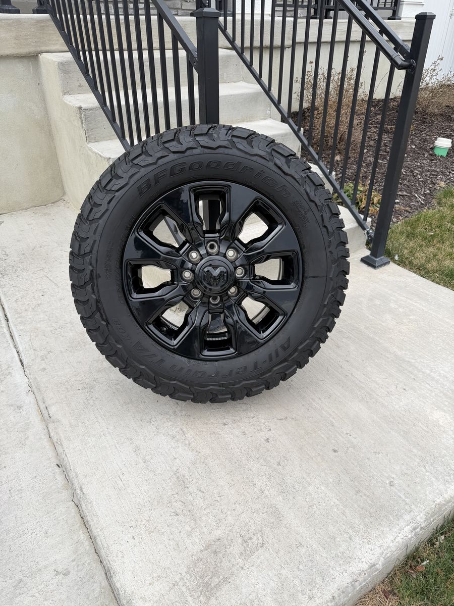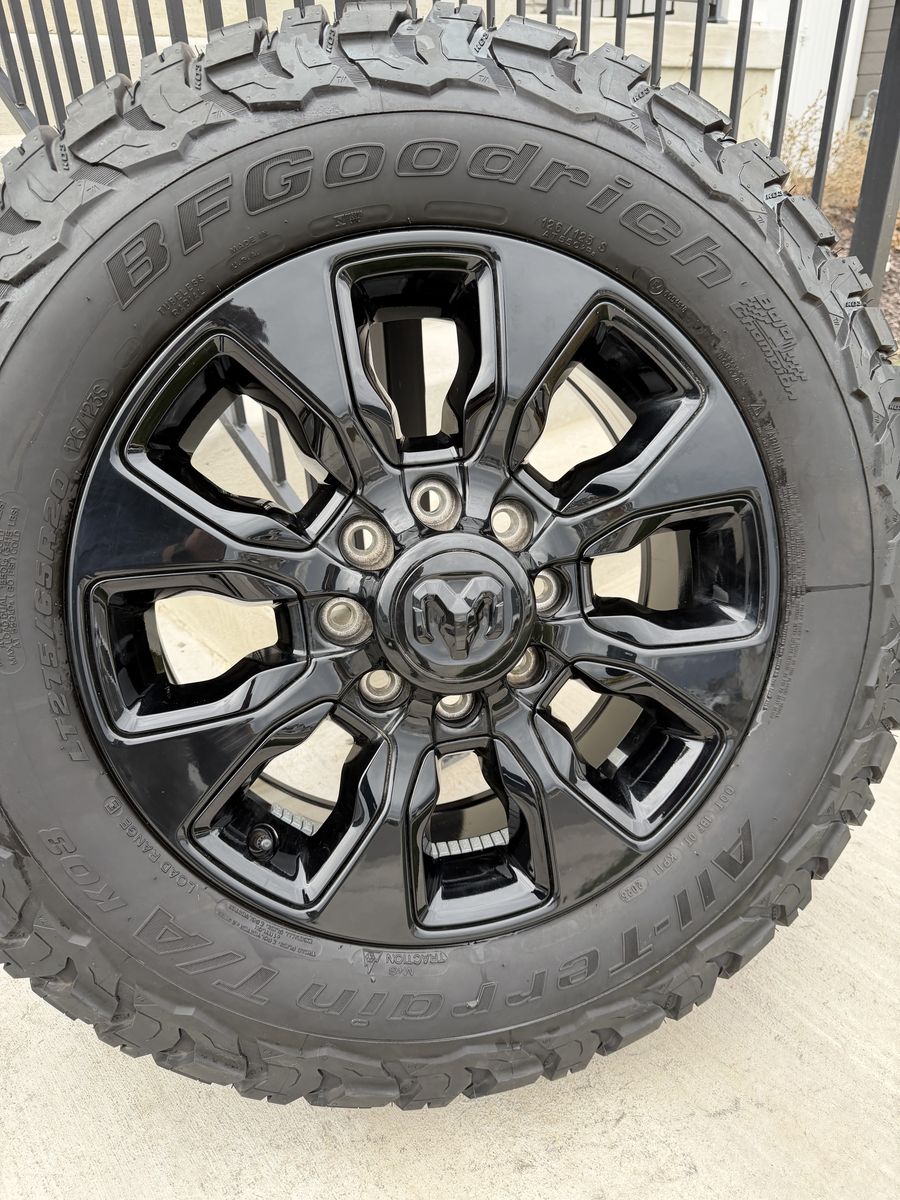 ApplePaySet of 4-Dodge Ram 3500 Limited Rims and Tires 275/65R20 Bfgoodrich Ko3 Almost new less then 1000 miles in excellent condition asking $3200 obo Rims are in tires are in excellent condition I can sell the rims or tires separately Bolt pattern 8-6.5 Text anytime 385-402-2292