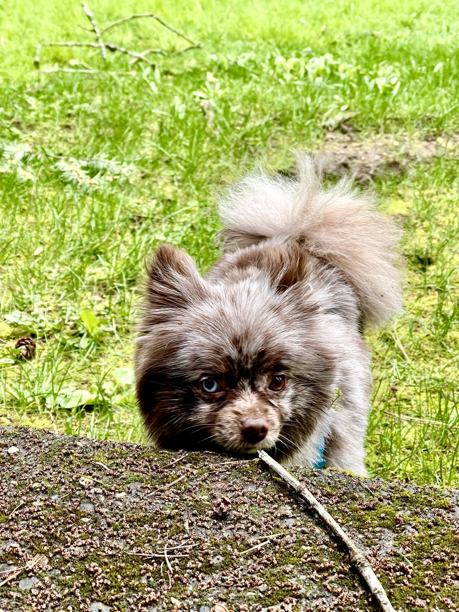 ApplePayFeDi is a Tri-Colored Chocolate Pomeranian availbe for stud service. He is a proven stud with champions in his blood line!