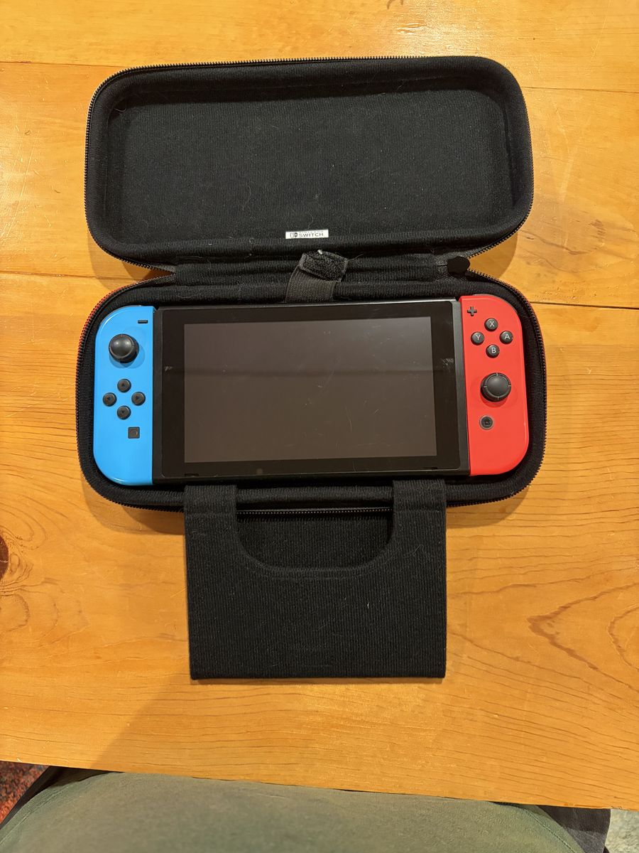 ApplePayNintendo Switch with carrying case, dock, power cable, and HDMI cable.