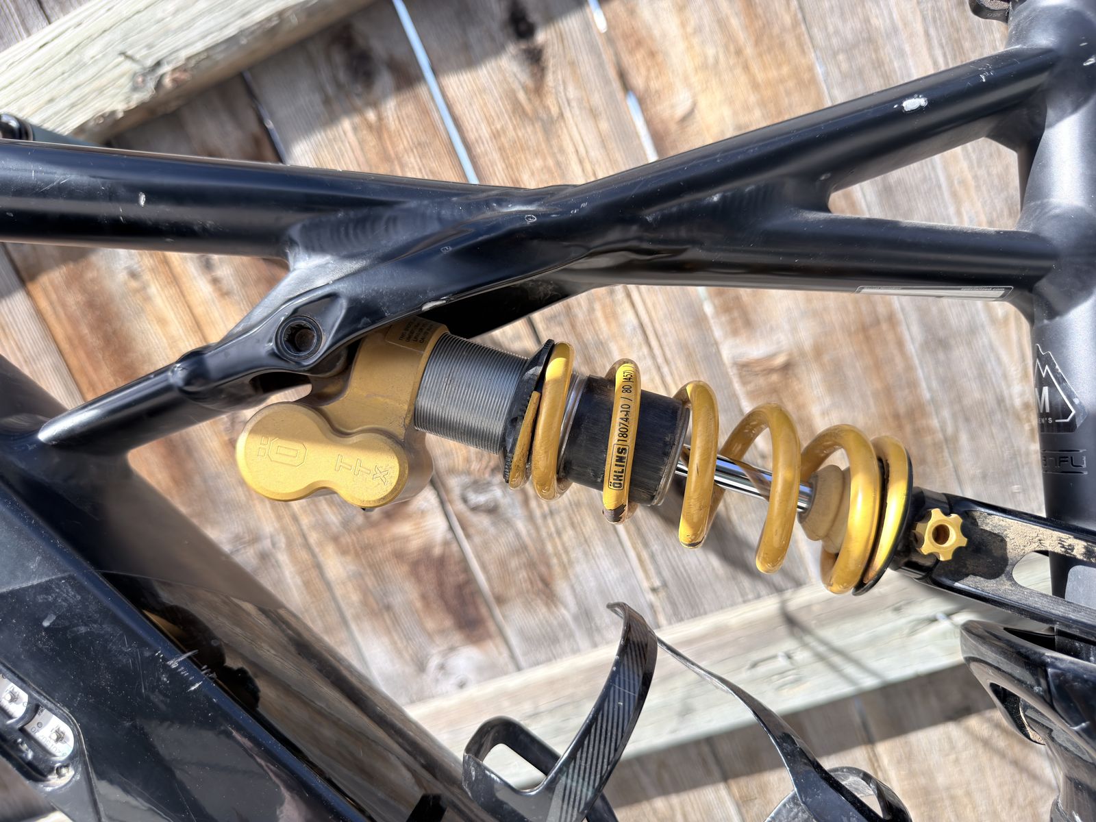 The Front/rear suspension is 180/180mm Front shock is the rockshox lyric It has the Öhlins rear shock, the motor and battery works great! is eligible for a free warranty replacement because of the cover! (I haven’t had time to do it yet!)
