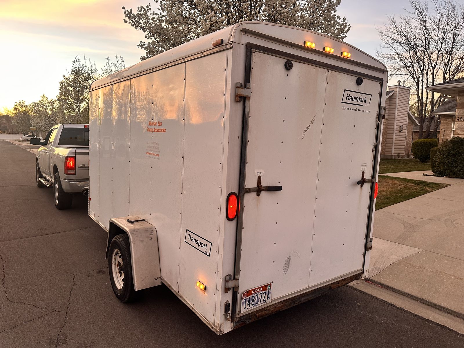 6x12 enclosed trailer, With Ramp. 3500 Ibs. Load capacity. For a long time now, it has been used solely for storage. This trailer is like new. Everything works great! I'm selling it because I don't need it. Exterior lights working Good tires Load capacity (GVWR): 3500 Ibs Clean title
