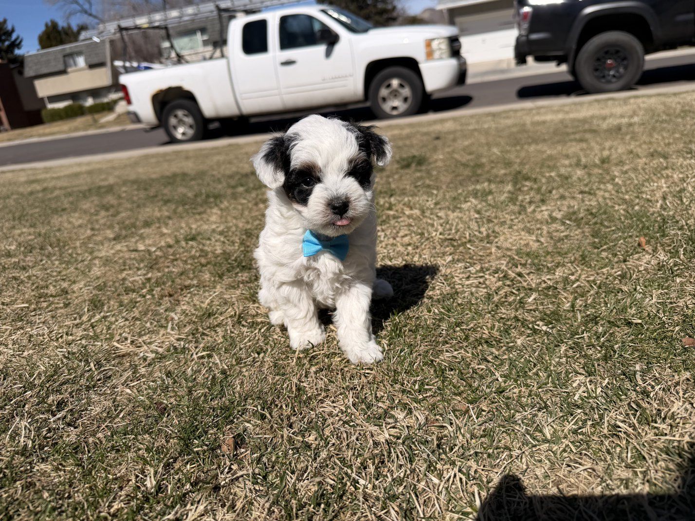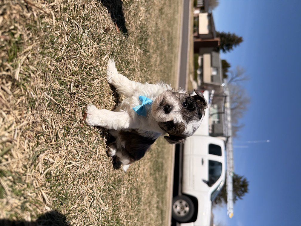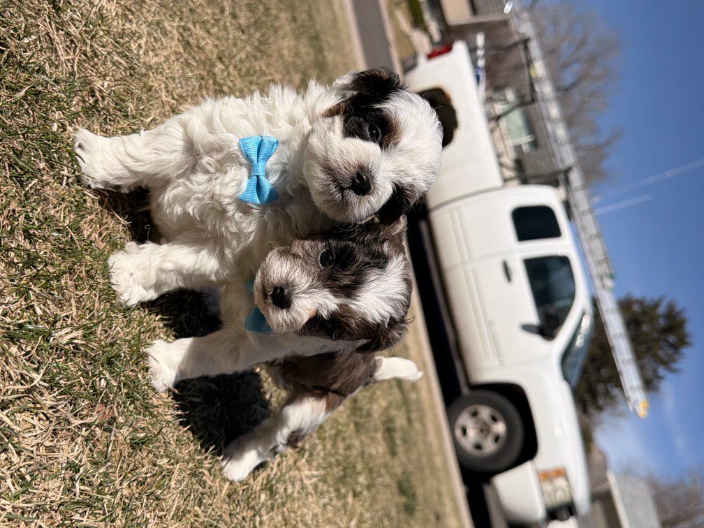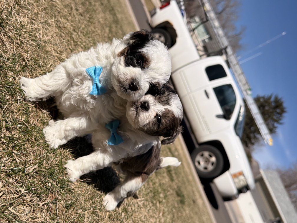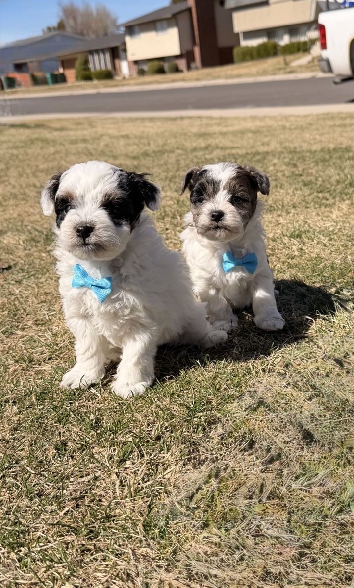 2 playful boys 1 beautiful girl (the grey-ish one!) They’re easy to tell apart thanks to their cute bows, and each one has their own little personality—full of love, curiosity, and puppy charm.