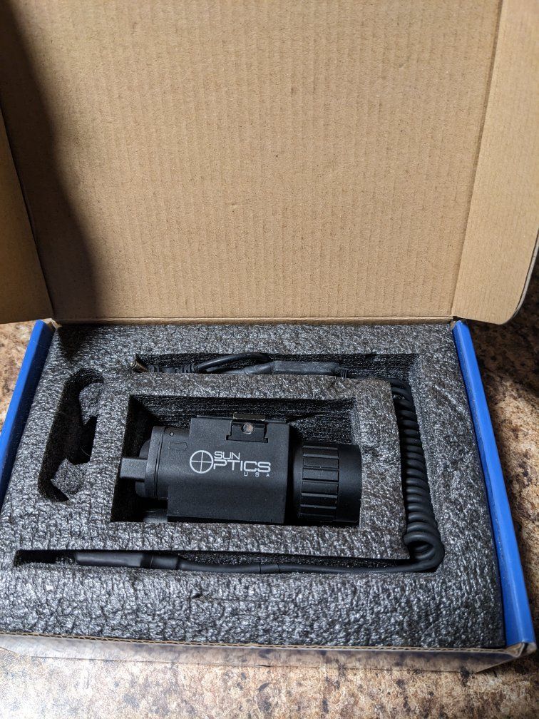 ZelleHigh-performance Sun Optics USA green laser sight in excellent condition. Bright, powerful beam that’s easy to see even in daylight. Comes with original box, foam insert, and charging cable.