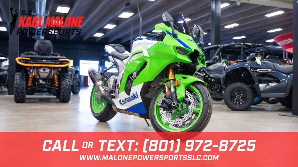 New 2024 Kawasaki Ninja ZX-10R Motorcycle For Sale In Salt Lake City, UT This New 2024 Kawasaki Ninja ZX-10R Motorcycle is for sale at Karl Malone Powersports SLC conveniently located in Salt Lake City, Utah. Our knowledgeable team is eager to assist you, so don’t hesitate to contact us today to schedule an appointment. If this isn't the exact Kawasaki Motorcycle you're looking for don't hesitate to go back and revise your search. We're sure to have the perfect Motorcycle for you in our showroom in Utah. We invite you to visit us at Utah’s premier Kawasaki dealer for new and pre-owned Motorcycles for sale. Let us help you find the ideal Motorcycle to take home today! Karl Malone Powersports SLC Address: 1379 W 3300 S, Salt Lake City, UT 84119 Phone: (801) 972-8725 2024 Kawasaki Ninja ZX-10R The Ninja® ZX™-10R supersport bike is built for those who rise to the challenge. Hailing from the proving grounds of the FIM WorldSBK Championship, the Ninja ZX-10R is the direct result of decades of world-class road racing innovation, carrying Kawasaki Racing Team (KRT) rider Jonathan Rea to six consecutive championship titles. Our experience on the track has led to a potent 998cc four-cylinder engine, a race-optimized chassis and an innovative electronics package. Push your limits aboard the Ninja ZX-10R. Features may include: LEGENDARY POWER CHAMPIONSHIP-PROVEN POWER The 998cc four-cylinder engine of the Ninja® ZX™-10R supersport was designed to win championships. Based on feedback from Kawasaki's WorldSBK race machine, an air-cooled oil cooler increases cooling performance for strong engine performance at all rpm. Gear ratios are optimized for track riding and offer quick low- to mid-range acceleration. The Ninja ZX-10R is built for those who rise to the challenge. HANDLE LIKE A NINJA® RACING-INSPIRED Built to dominate the track, the Ninja® ZX™-10R supersport features advanced suspension and brake componentry combined with optimized chassis geometry and precisely tuned bodywork for maximum aerodynamic performance. ADVANCED TECHNOLOGY BEYOND NORMAL Kawasaki next-level electronics bring the extraordinary power of the WorldSBK-winning Ninja® ZX™-10R motorcycle to stunning new levels. HANDLING TECHNOLOGY DESIGNED TO WIN The Ninja® ZX™-10R features WorldSBK Championship-proven technology delivering unrivaled agility, control and handling. ADDITIONAL Kawasaki Quick Shifter (KQS) Sport-Kawasaki TRaction Control (S-KTRC) Kawasaki Launch Control Mode (KLCM) Kawasaki Cornering Management Function (KCMF) Kawasaki Engine Brake Control (KEBC) Öhlins Electronic Steering Damper Finger-Follower Valve Actuation Integrated Riding Modes Power Mode selection Electronic Cruise Control All LED lighting
