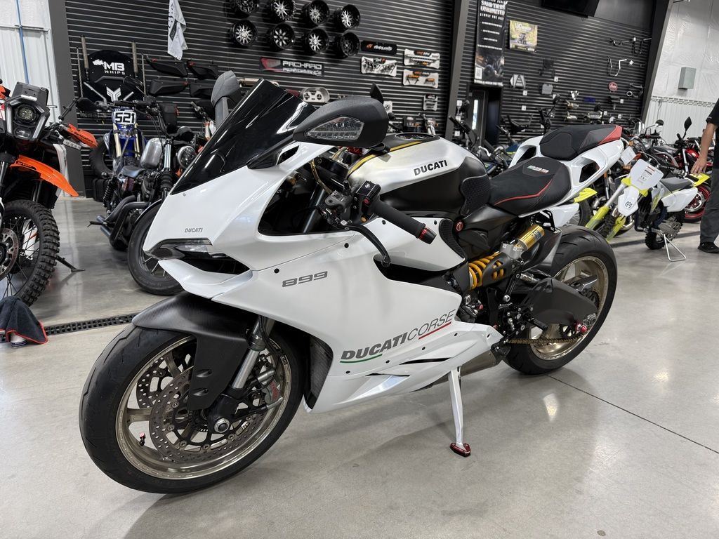 The revolutionary technology found in the Monoscocca frame and Superquadro engine, 148 HP delivered with incredible lightness and unprecedented agility, the unmistakable design, Ducati Quick Shift and ABS fitted as standard. This all ensures that the 899 Panigale is just the bike to give a Ducati Superbike adrenalin rush, both on the track and on the road.