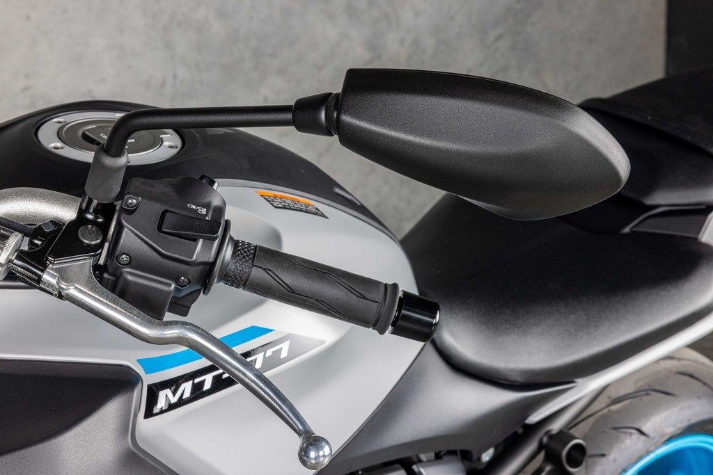 An inverted 41mm KYB® front fork offers high levels of control and a planted front-end feel when cornering and braking, all while providing the MT-07 with a more modern look. The linked-type monocross KYB® rear shock is optimized to match the rigidity of the front fork, creating a more sporting ride.