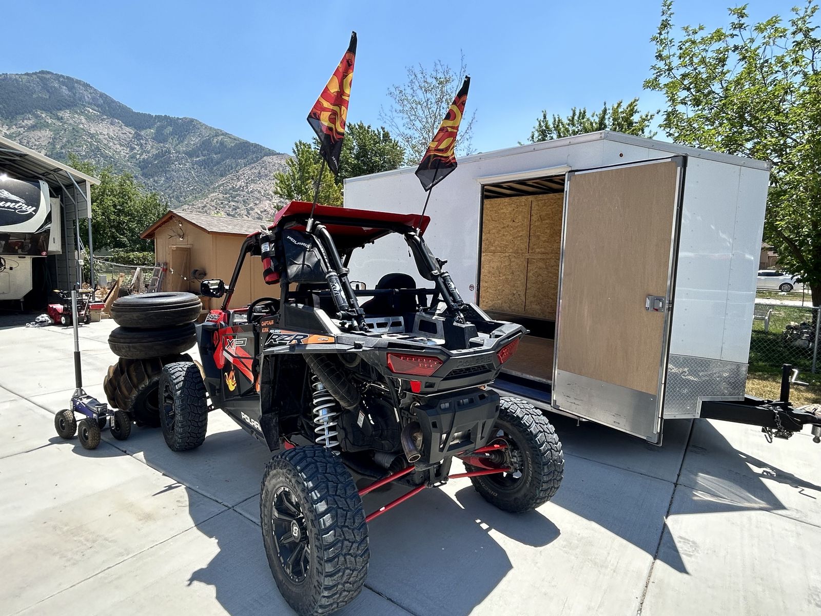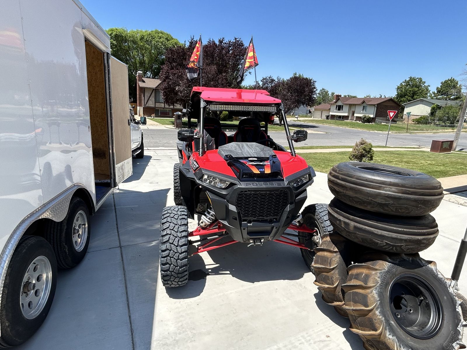 CashApp2017 Polaris Turbo 3024 miles, machine does great in sand on the trails and road and includes all 4 sand tires .Regular tires are COOPER DISCOVER STT PRO. 30X9.50 RST Includes PRO ARMOR sand tires on Douglas rims, and includes jack…Machine is street legal and comes with aluminim charge tube, dyno jet computer,light bar, lighted whips. Upgraded to four point harnesses and UTV GIANT seats. Has aluminum rack for Millwakee pack out boxes. Shocks have been tuned by Desert Speed Shock out of Hunnington, Utah. 750 miles on brand new clutches. Trailer is Look Element enclosed 8X14 trailer, upgraded to aluminum rims and radial tires. Both titles in hand.