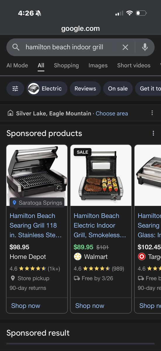 Hamilton Beach Electric indoor grill. I have 2, one is practically new & in excellent condition $60 obo & the other has some wear on the actual grill part, otherwise in great condition $30