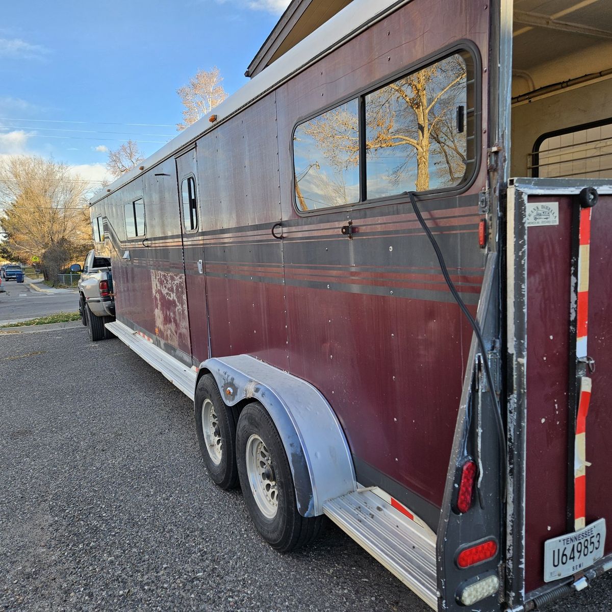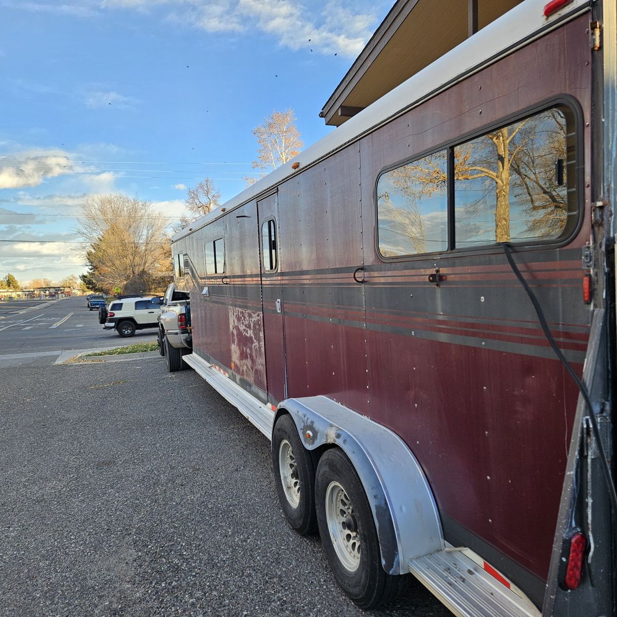 Please read entire ad before contacting my! price is set, no offers,no delivery, this is the price! 1992 trail-et enclosed 36' horse trailer. 68" wide 7'2"" -tall inside measurements. Has a divider wall that could be welded in. Also has one set of horse dividers. Ramp on rear, and passenger side. 2 walk in doors. Led lights all way around. New brakes 10k miles ago. Vgc 14 ply gladiator tires and two spare mounted tires. Also has shocker hitch on gooseneck. Works great! Does need a fender. $4,000. Cash. Wy title in hand
