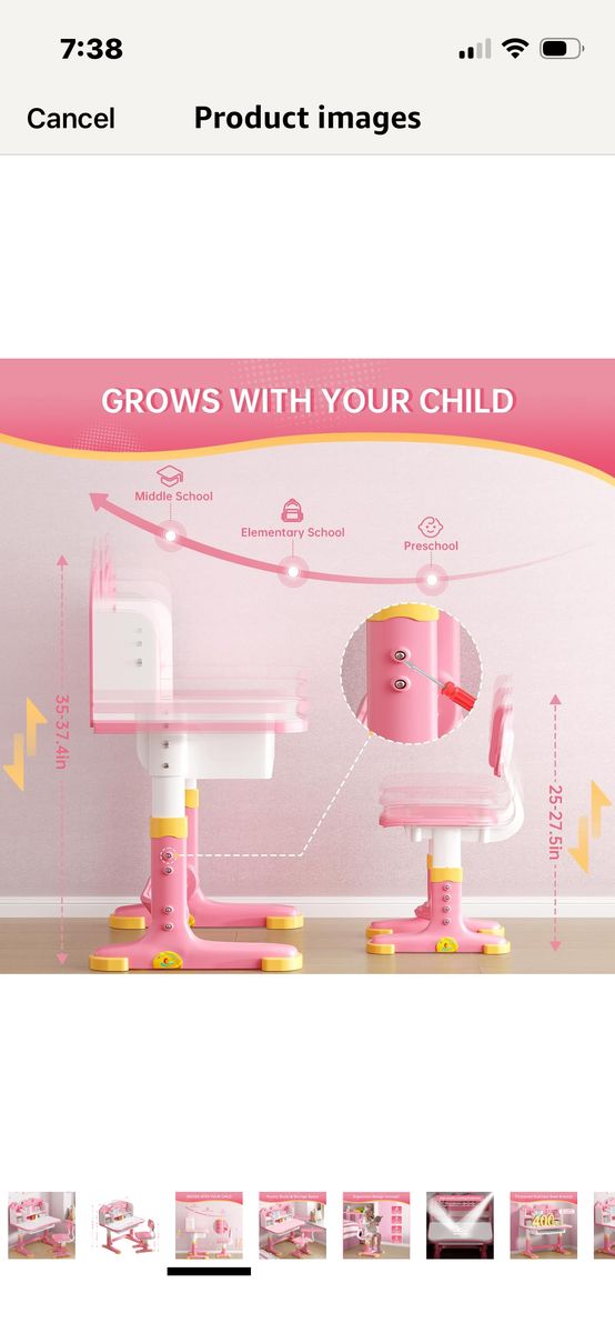 GooglePayThis is brand New in the box…Kids Desk and Chair Set, Height Adjustable Child's School Study Writing Tables, Kids Desk with Bookstand and Storage Drawer, Widened Desktop with Desktop for Boys and Girls