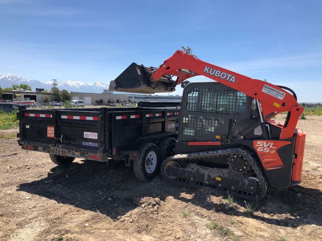 Kubota SVL65 track loader with large dump trailer — built for moving, loading, and hauling material efficiently on the same job.