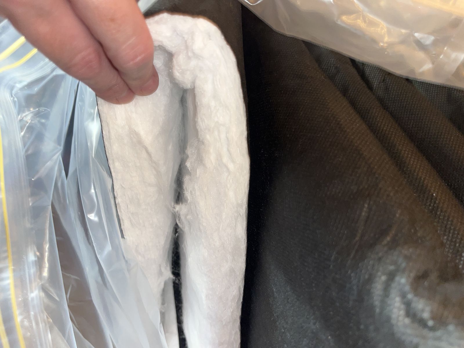 GooglePayNEW Upholstery Foam Cushion Padding + Black Fabric (3 Large Bags) Price: $150 for all 3 Description: Selling a large lot of upholstery foam padding with black fabric material. These come in 3 big bags and appear to be high-density foam with a fabric backing on one side—great for a variety of DIY or professional projects.