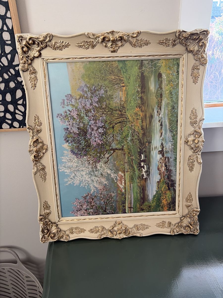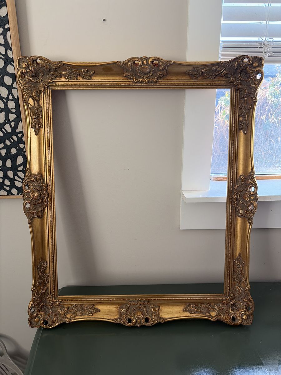 VenmoLarge vintage frames. Please see photos for condition. $60 for all three OBO Inside of the gold frames holds a picture or canvas measuring 20 L x 24 W the white frame inside holds a picture or canvas measuring 20 L x 16 W