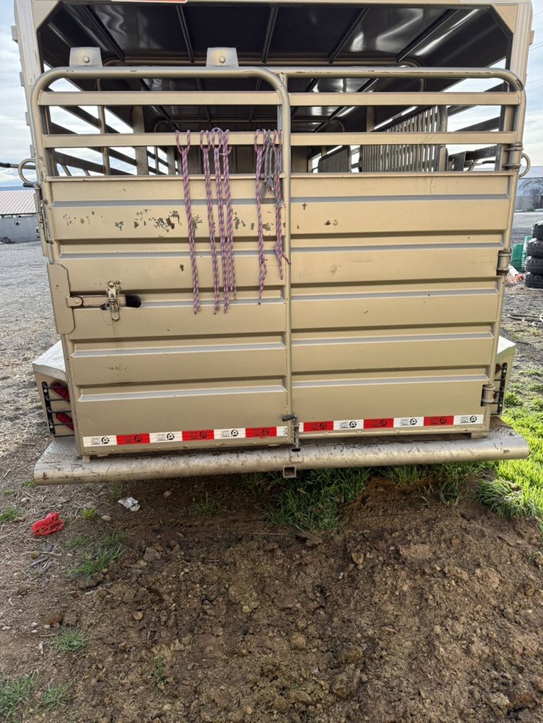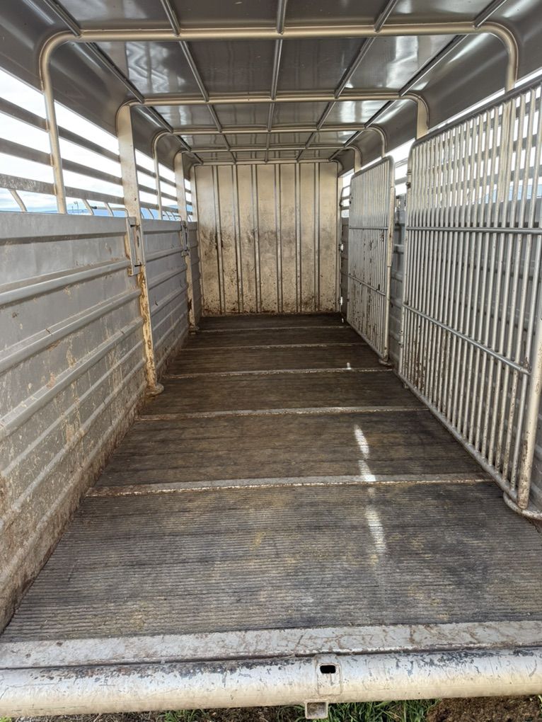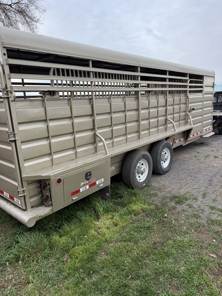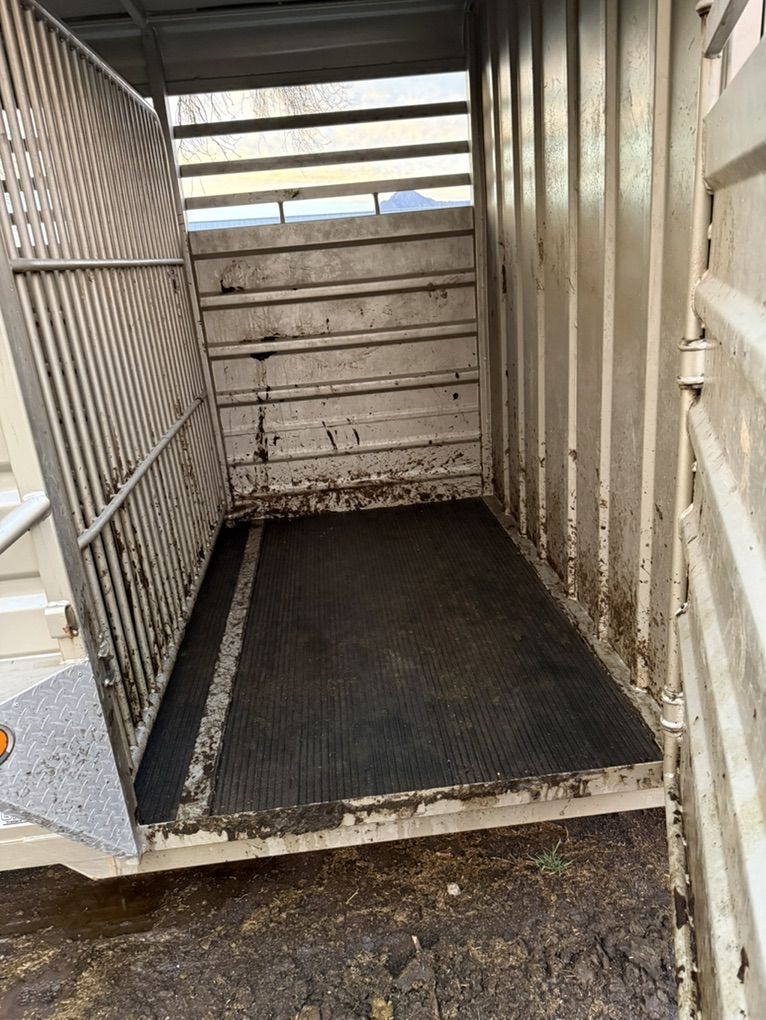 24ft gr stock combo 4ft tack room 20 by 6 stock area 2 cut gates rubber flooring 48” escape door 2 7000lb axels pulls good and quite