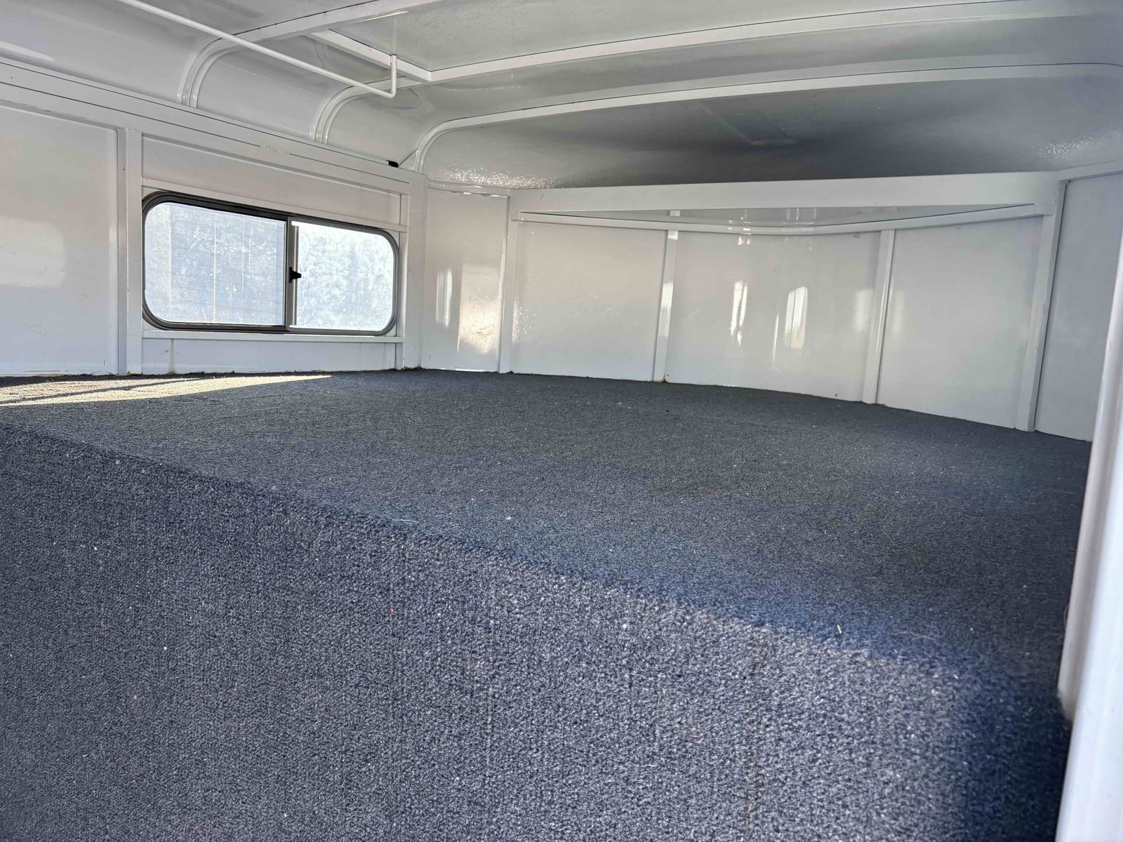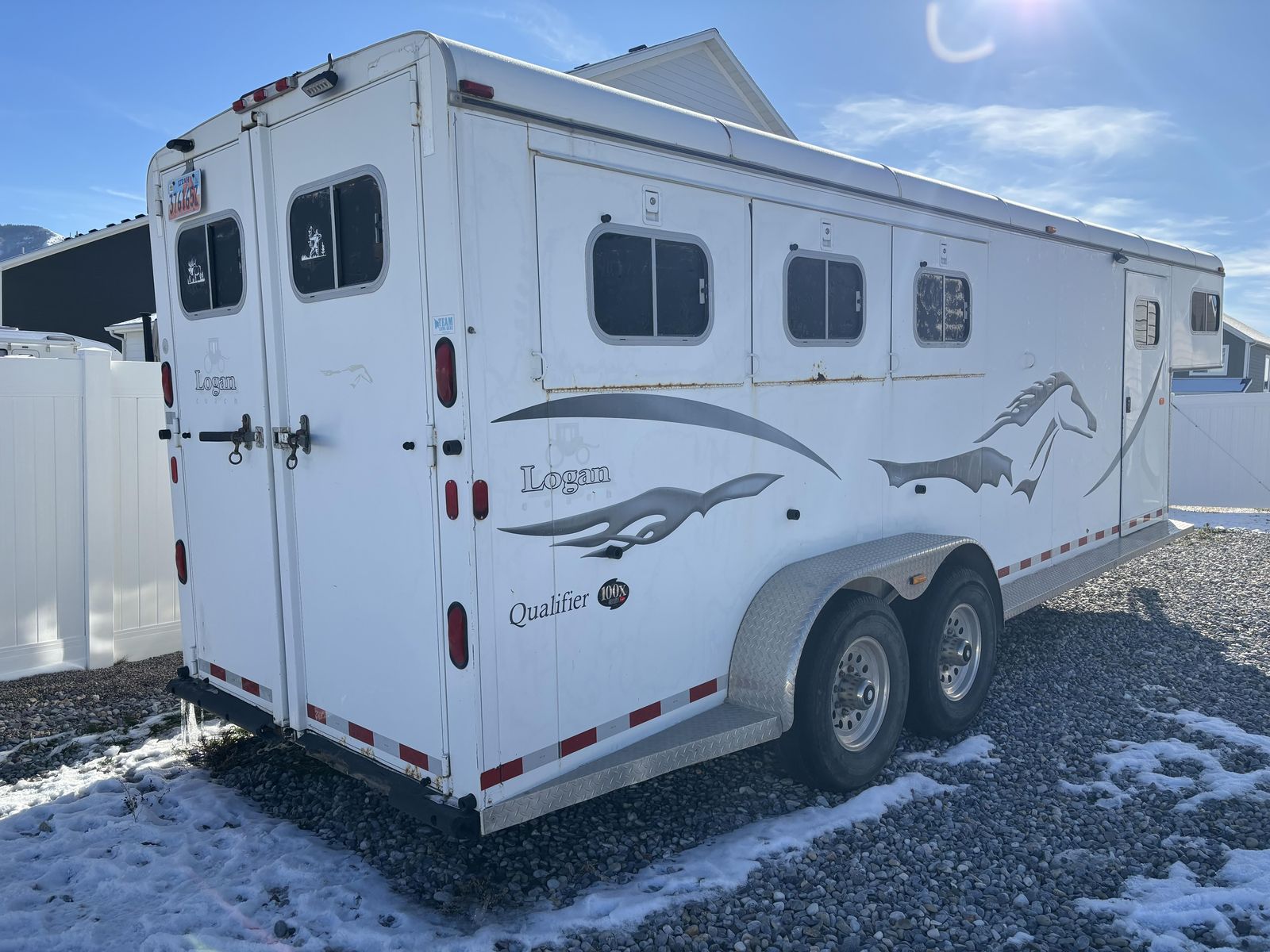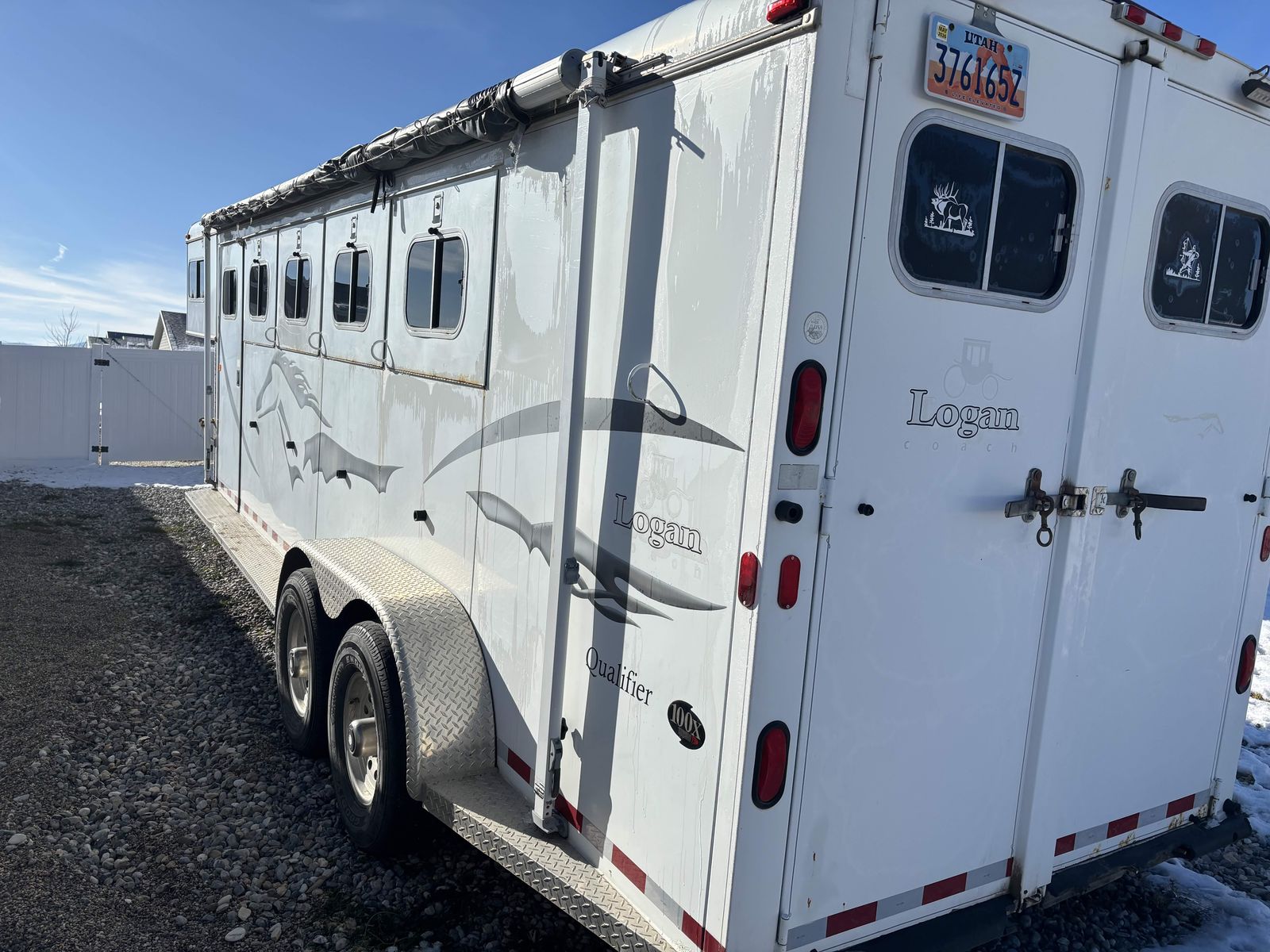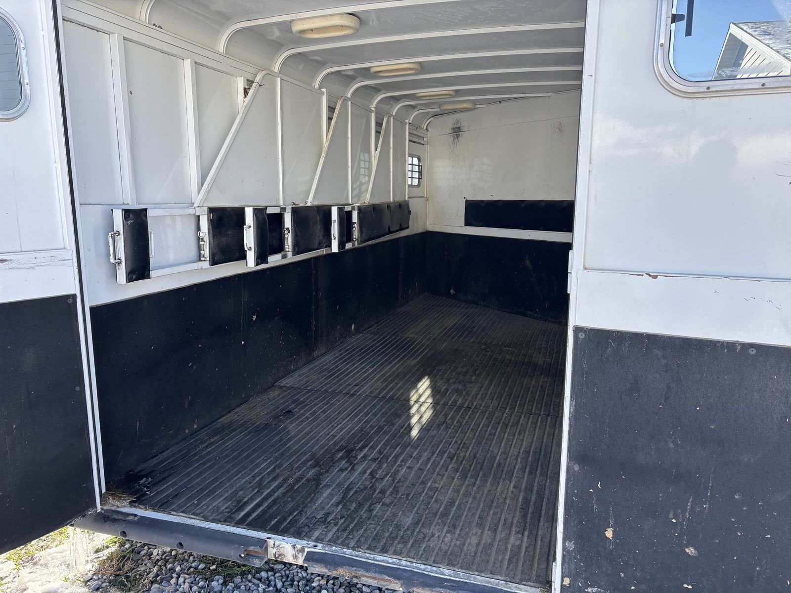 Swing-out saddle rack, pad rack, boot box, 50-gallon water tank.