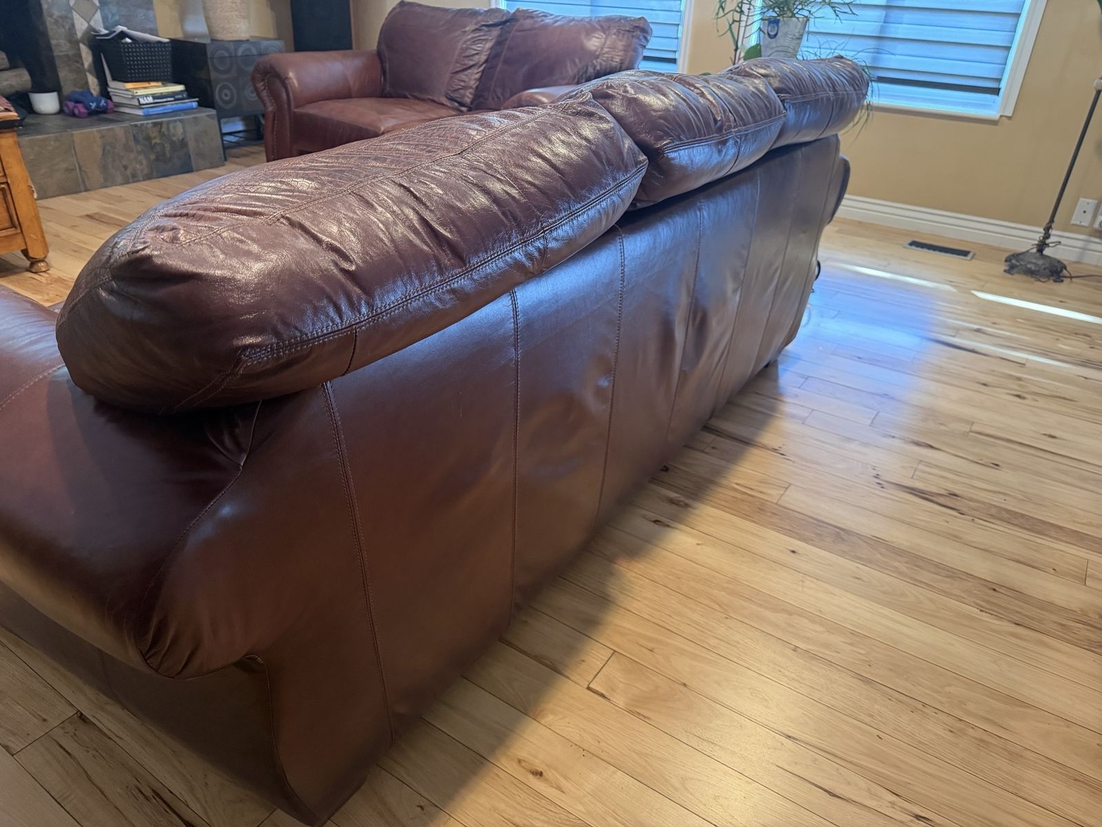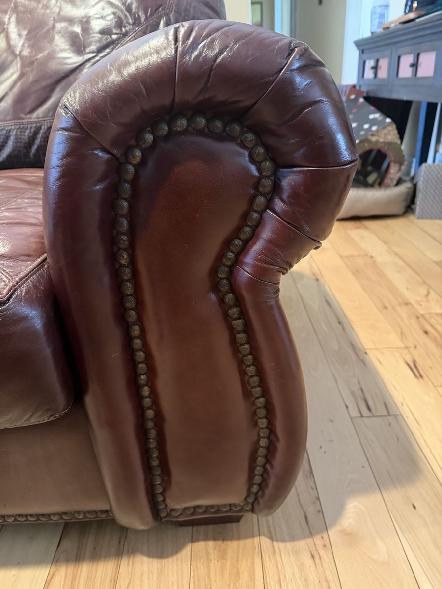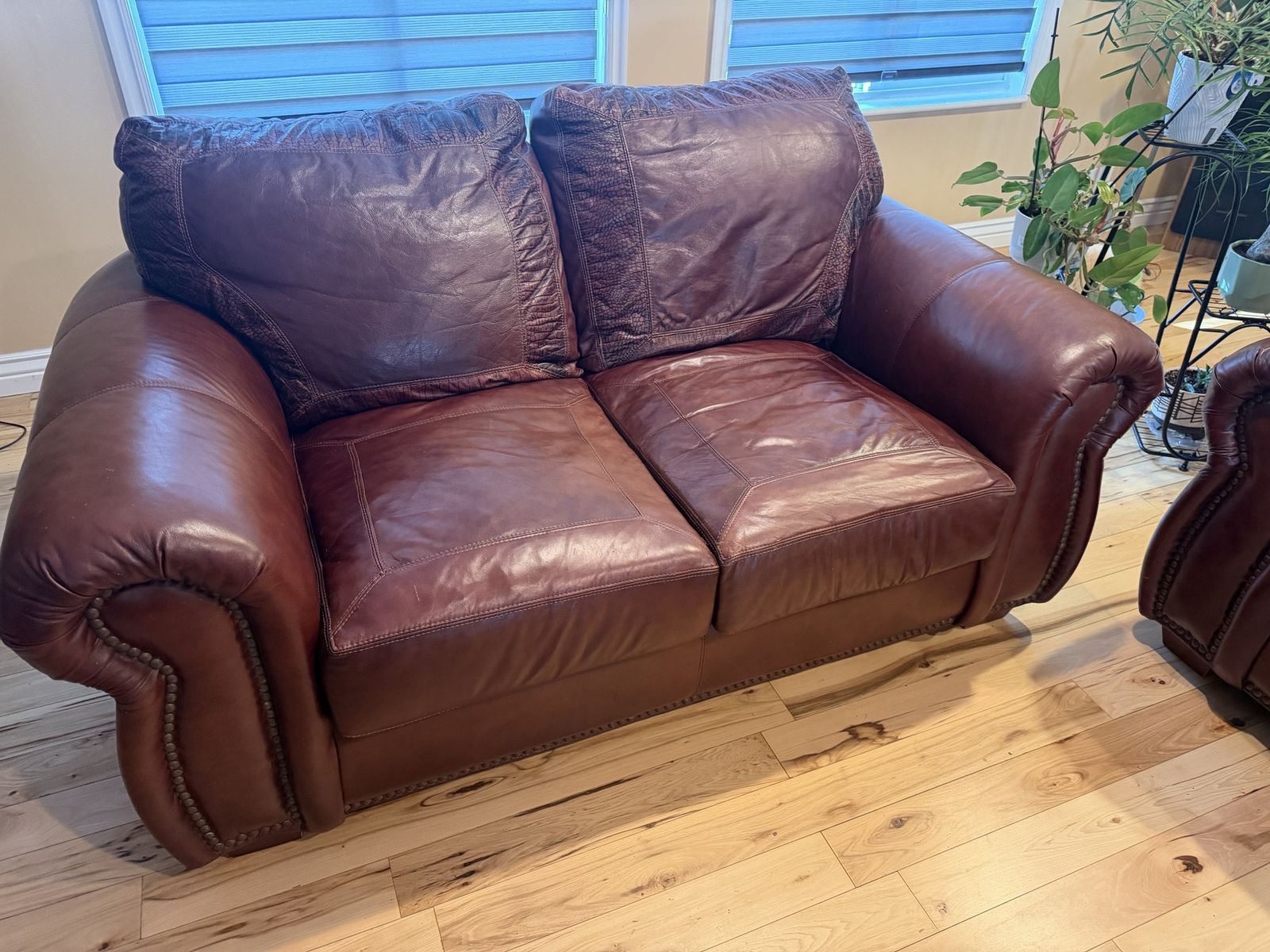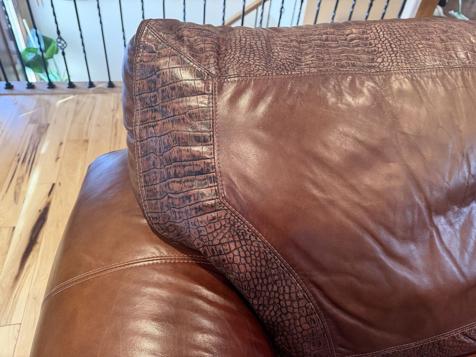 ZelleLeather sofa & loveseat set: "Western style" full grain-leather with aligator accent and decorative nailhead. High-quality construction – heavy, durable, and built to last.